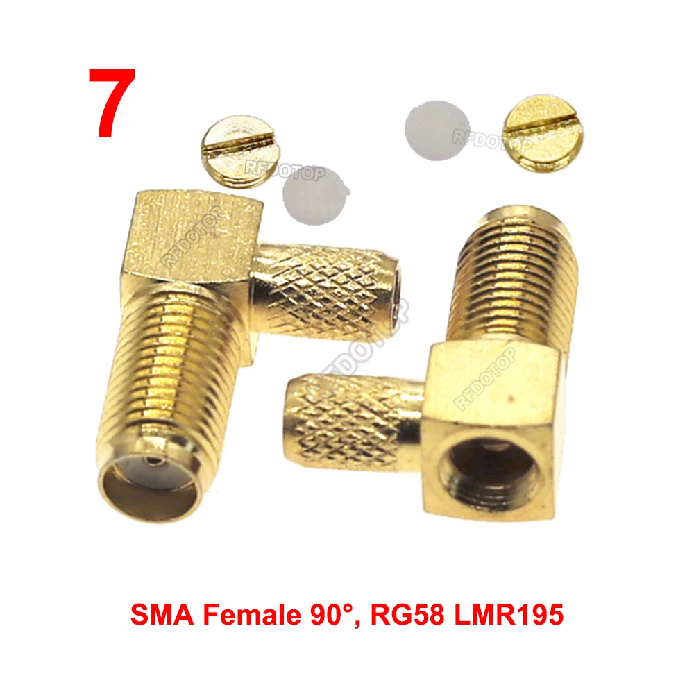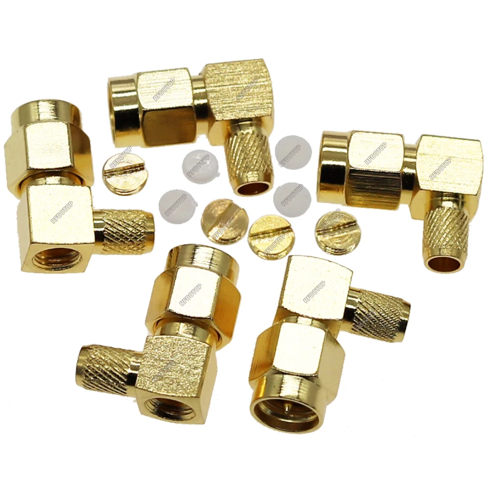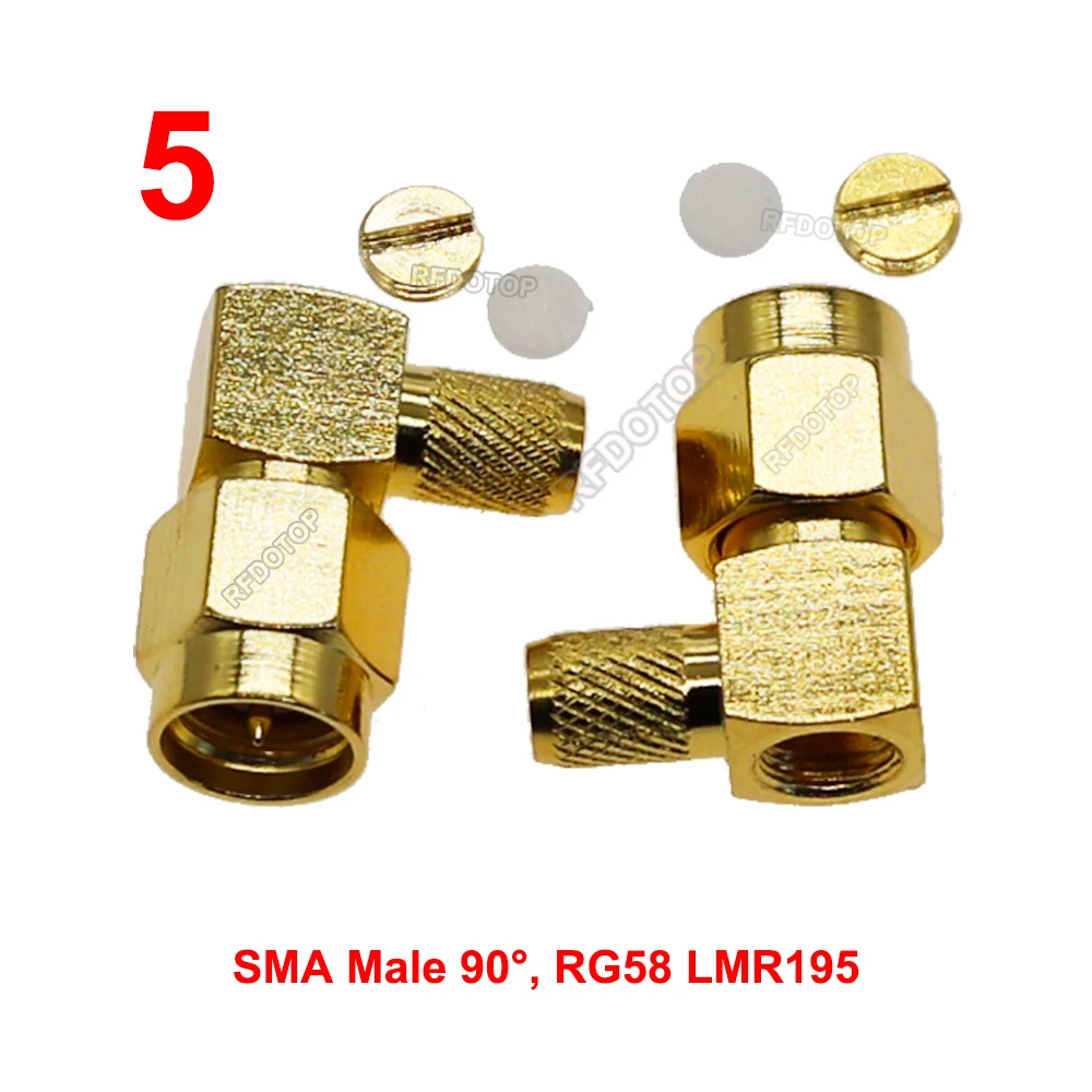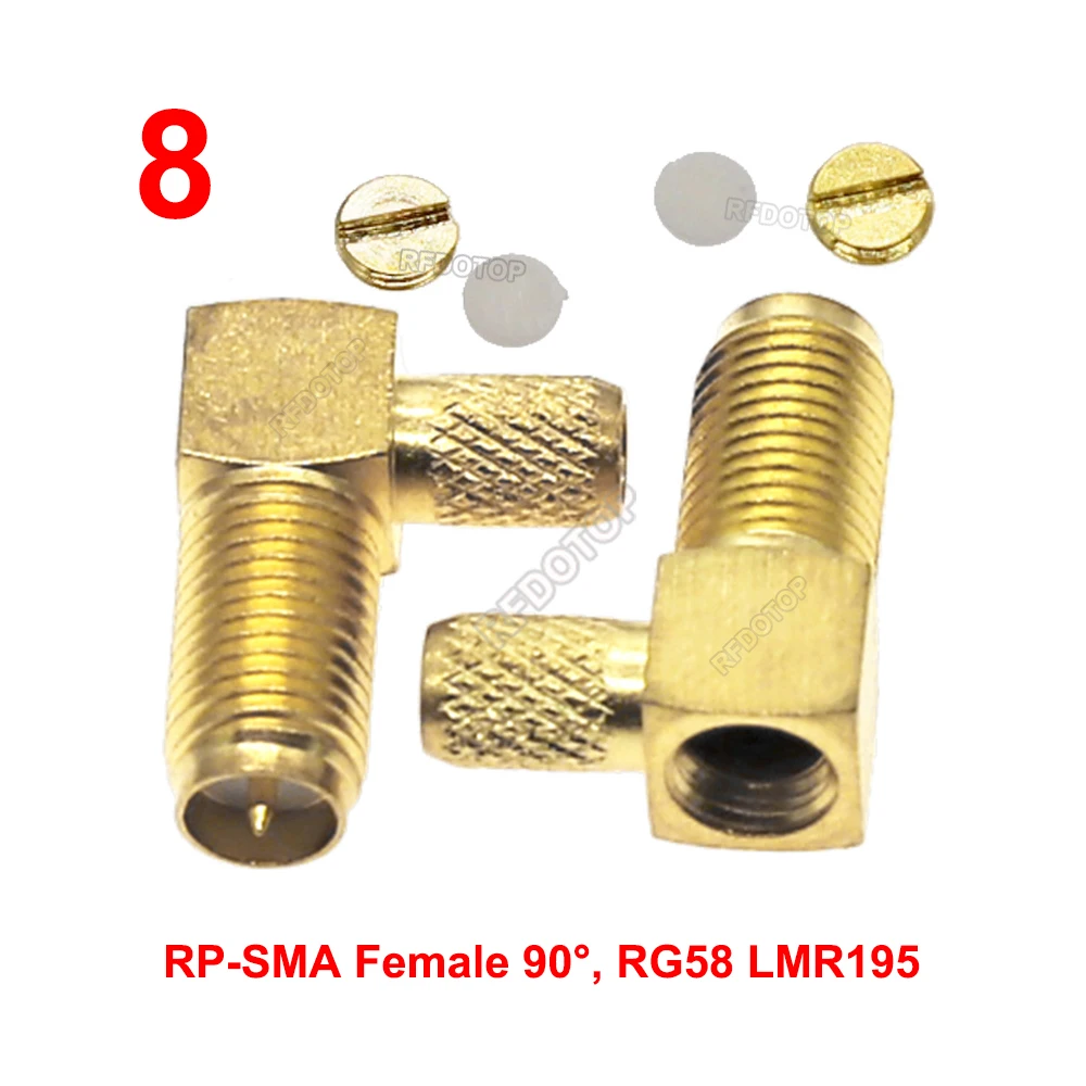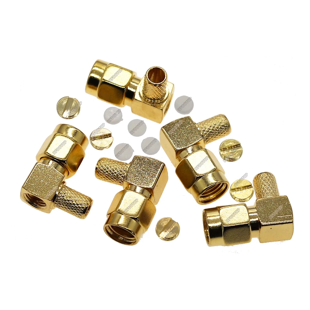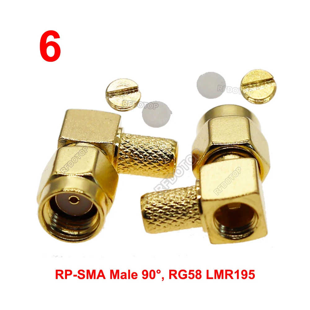 ขั้วต่อ SMA แบบ Crimp สำหรับสายโคแอกเชียล RG58 LM195 ชุบทอง RPSMA-50JW-3 ขั้วต่อ RF 90 องศา คุณภาพสูง