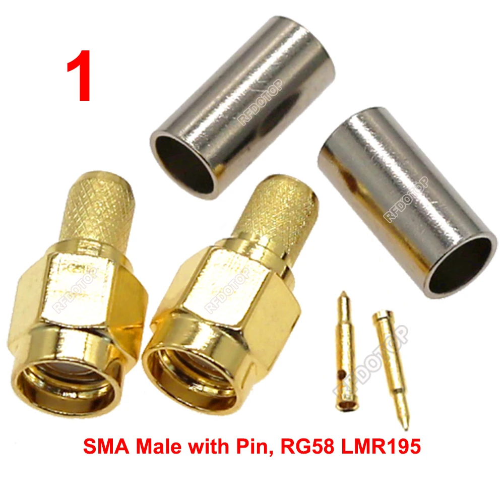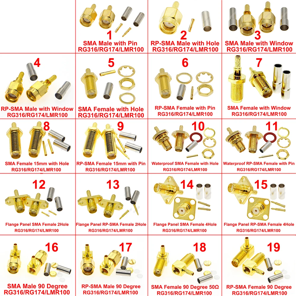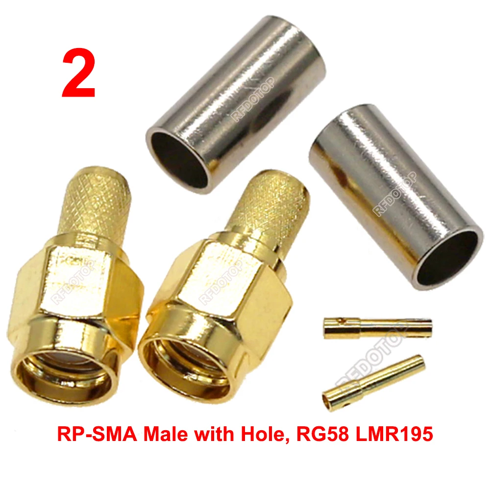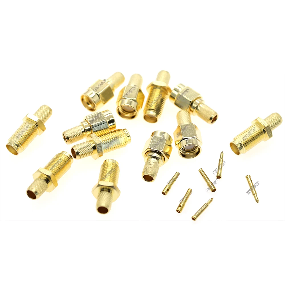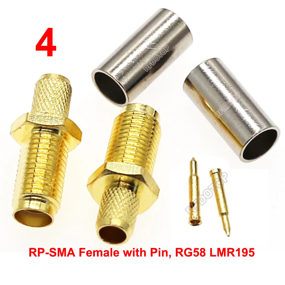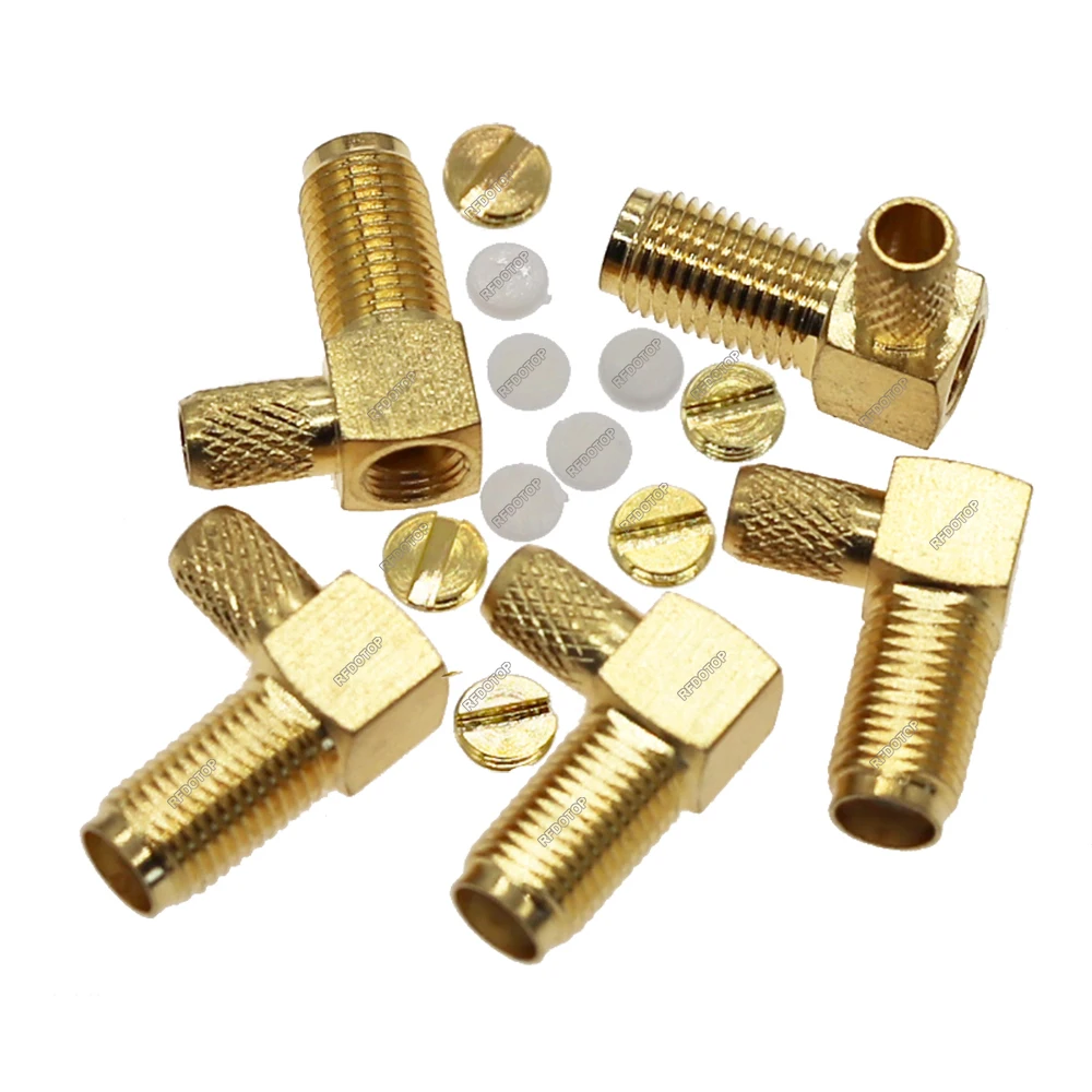 ขั้วต่อ SMA แบบ Crimp สำหรับสายโคแอกเชียล RG58 LM195 ชุบทอง RPSMA-50JW-3 ขั้วต่อ RF 90 องศา คุณภาพสูง
