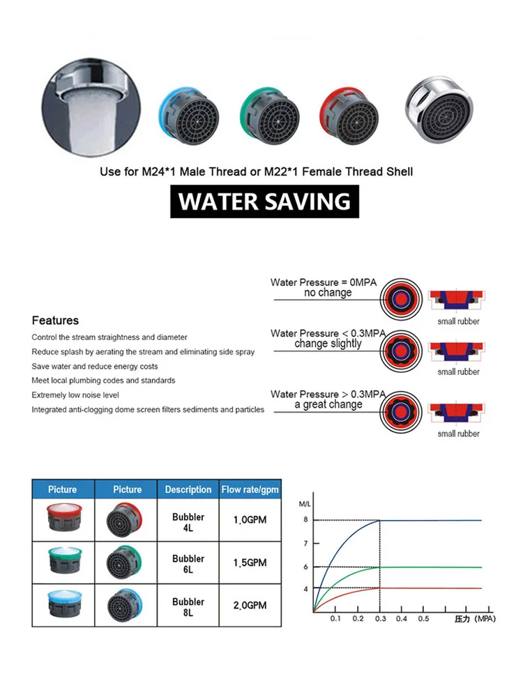 Wasourlf 6ชิ้นก๊อกประหยัดน้ำ M24 2L เกลียวตัวผู้4L 3L ก๊อกน้ำสำหรับเปลี่ยนอุปกรณ์เสริมก๊อกน้ำห้องน้ำ