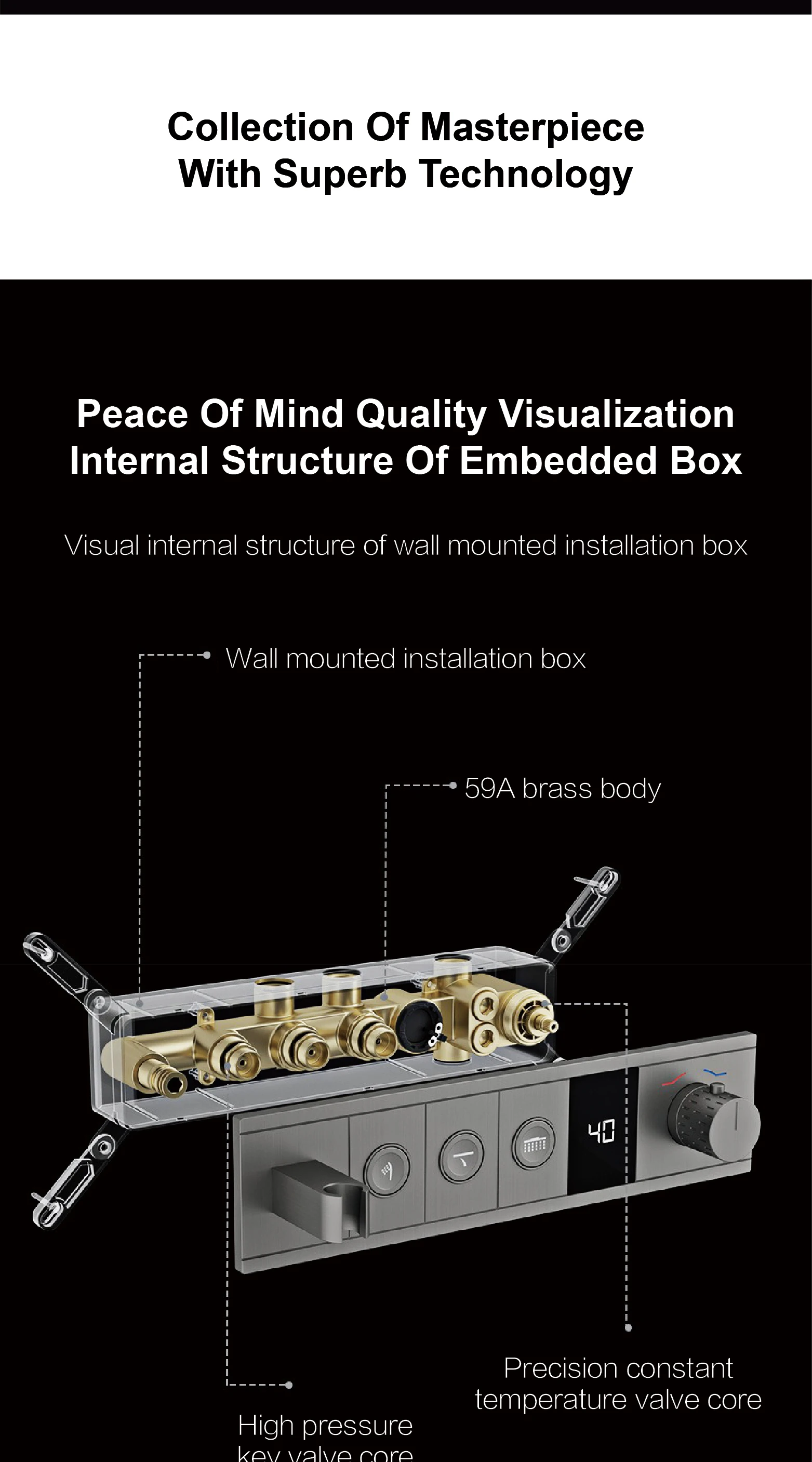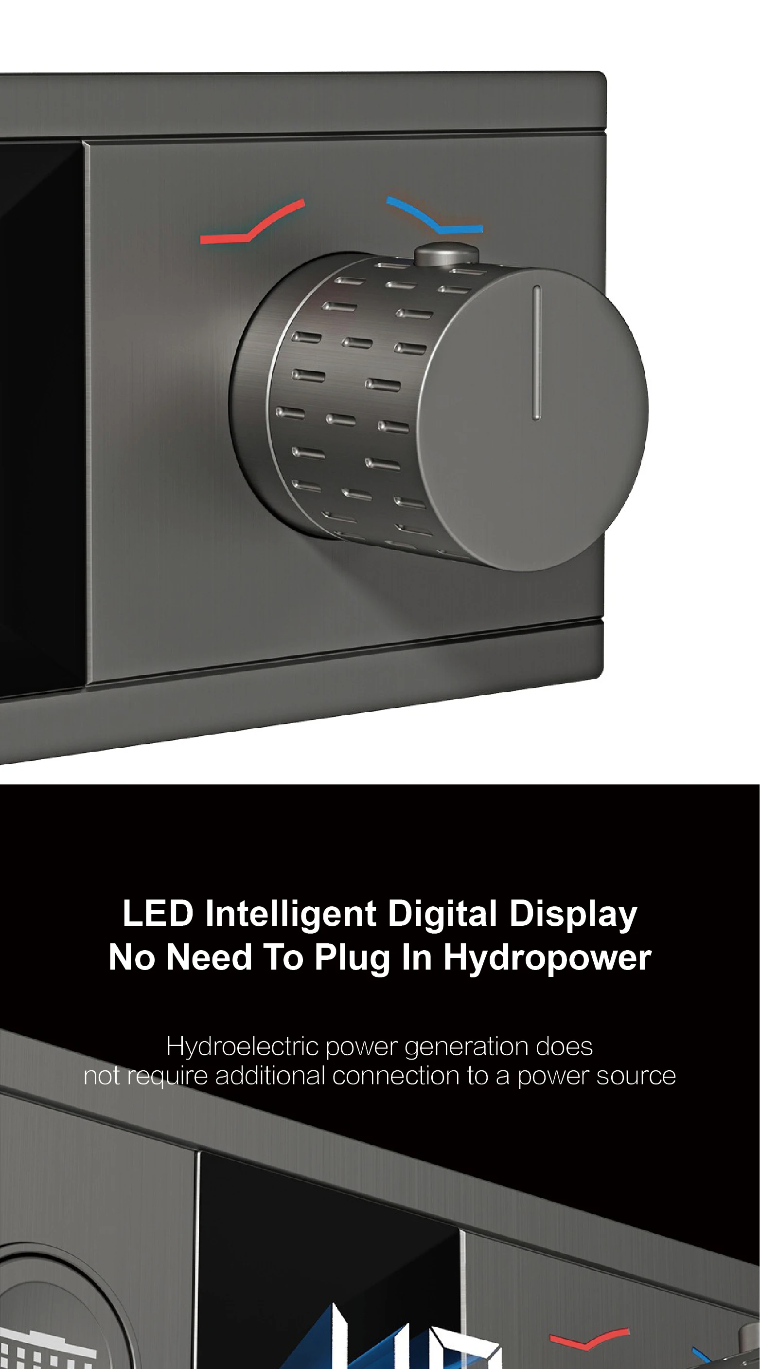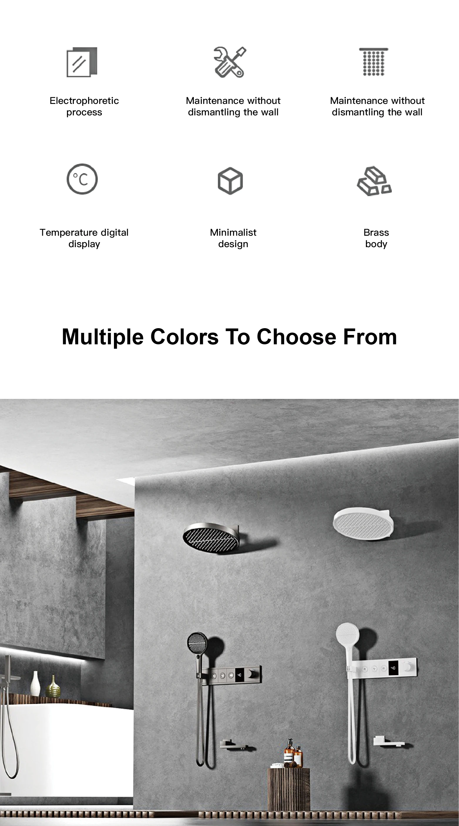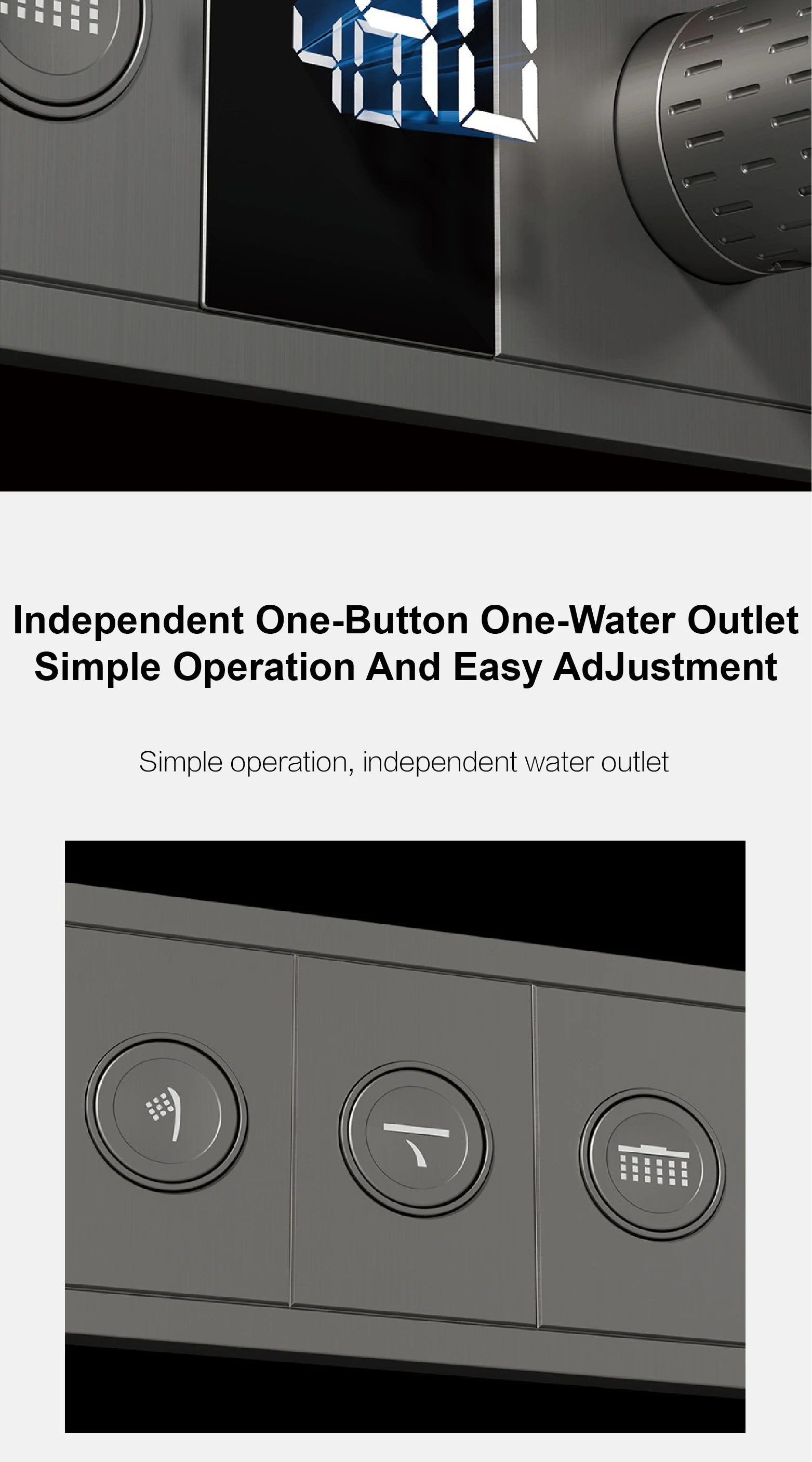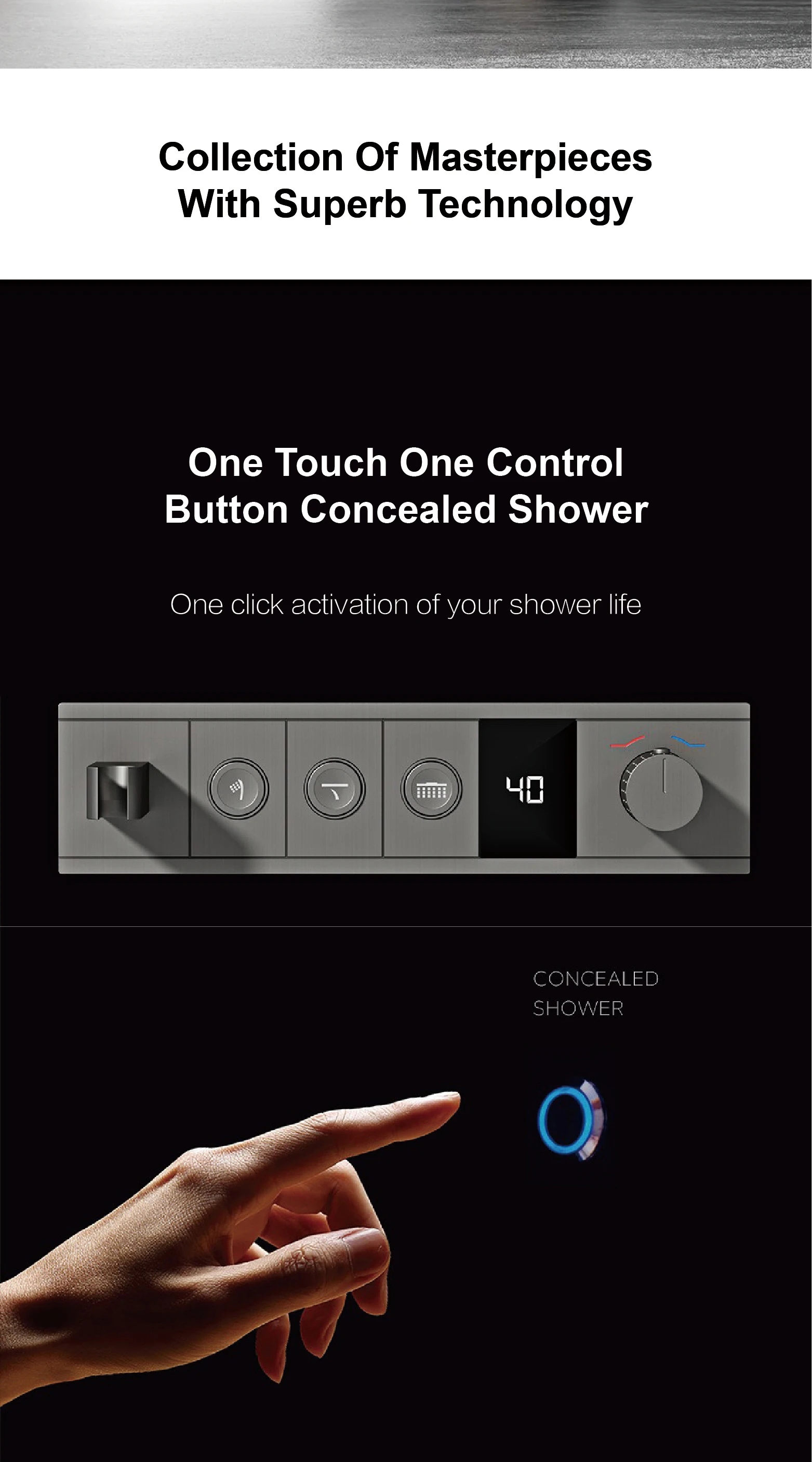 หรูหราปืนทองเหลืองสีเทาเพดานฝักบัวอาบน้ําอุณหภูมิคงที่ระบบจอแสดงผลดิจิตอล LED น้ําร้อนและเย็นฝังก๊อกน้ําห้องน้ํา