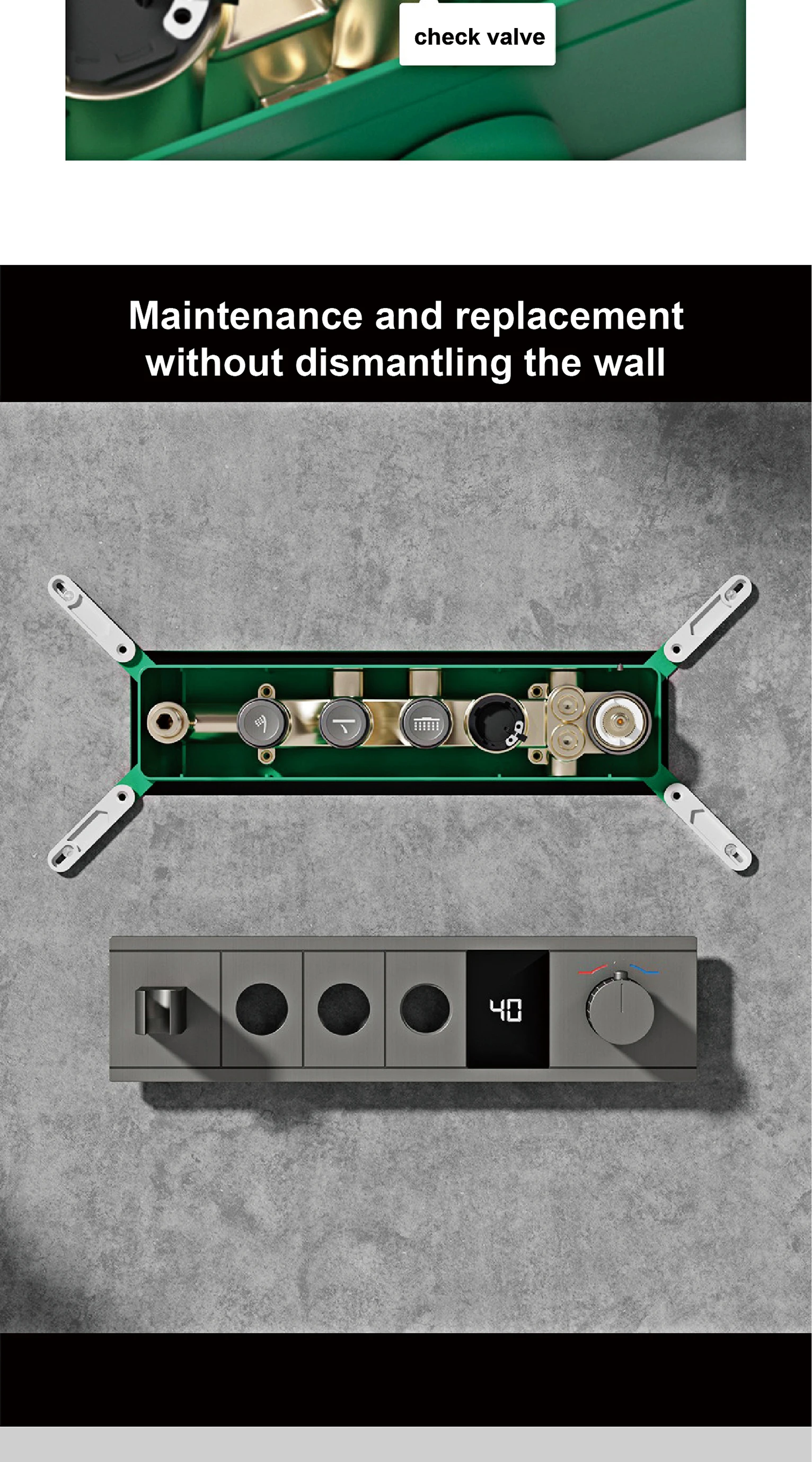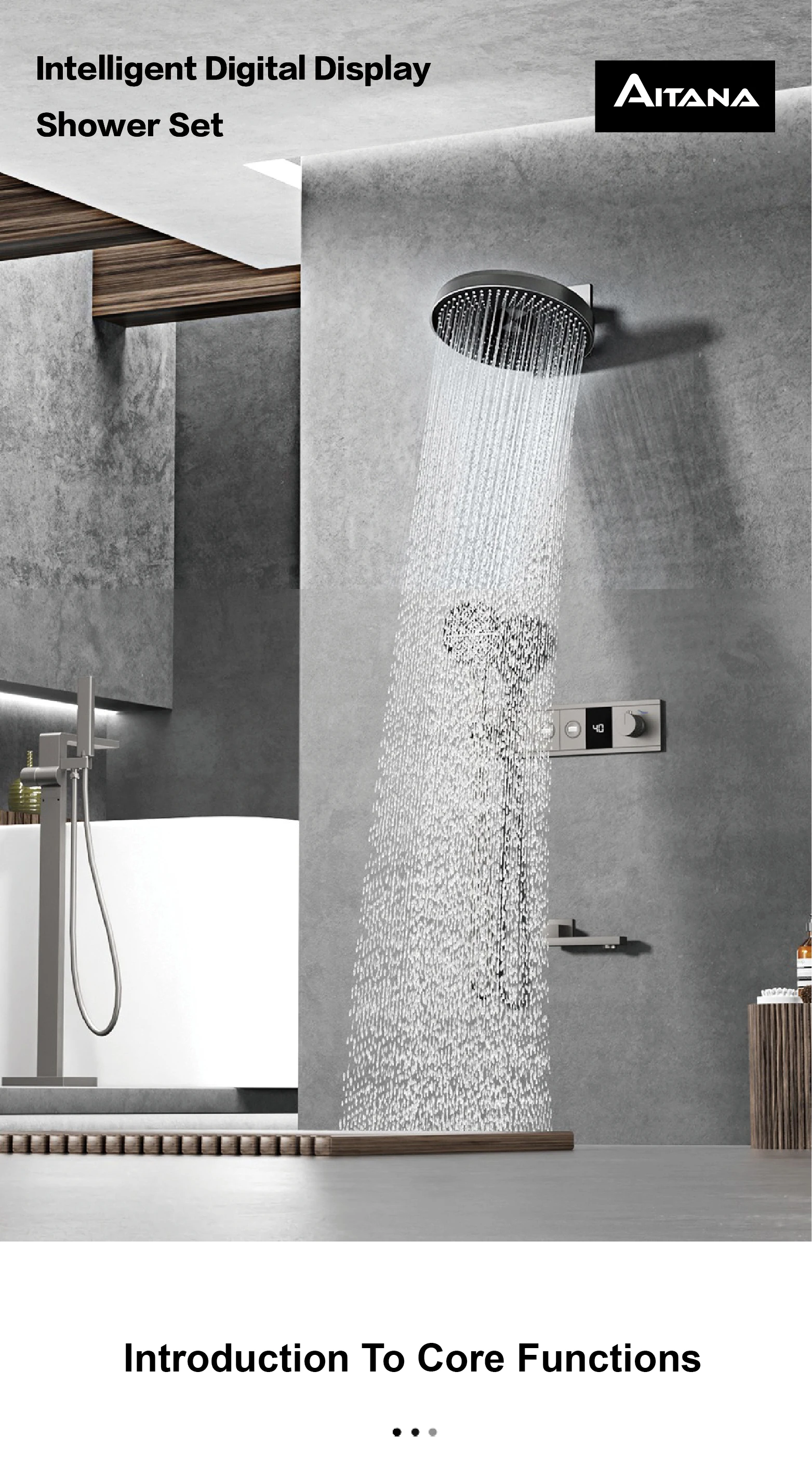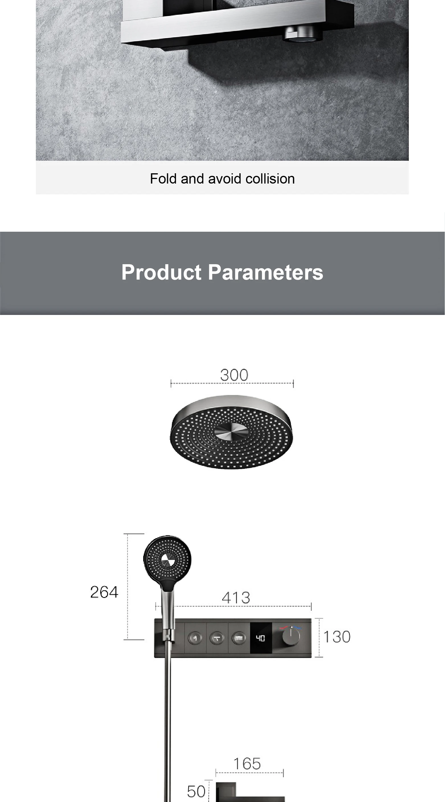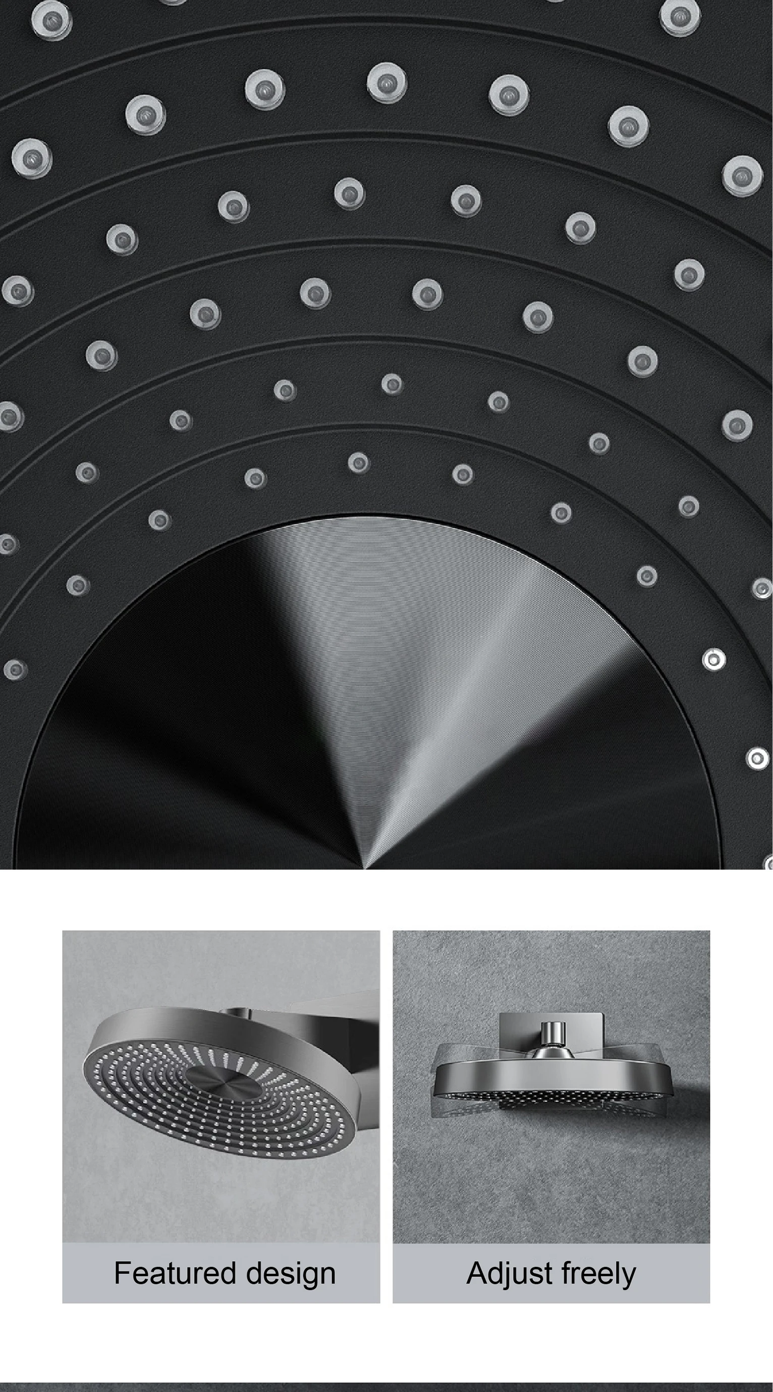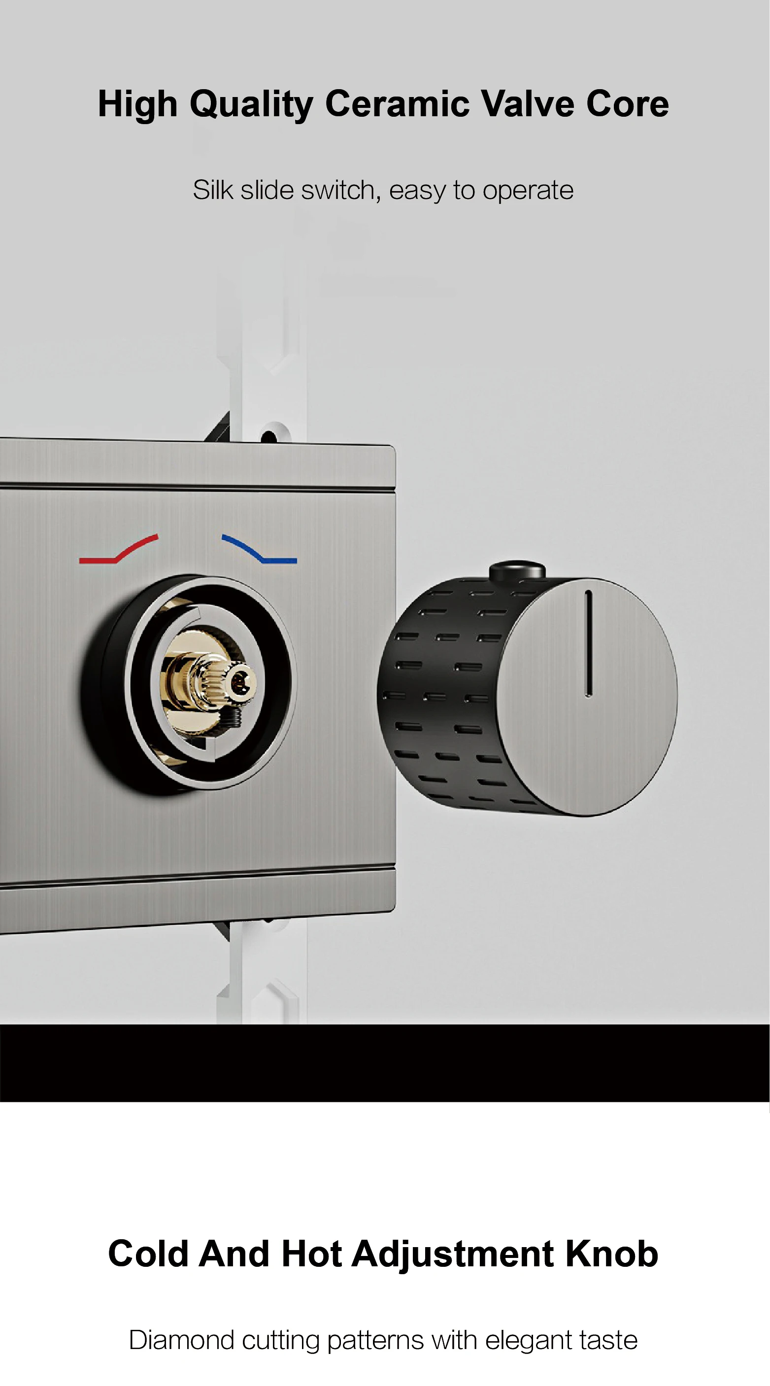 หรูหราปืนทองเหลืองสีเทาเพดานฝักบัวอาบน้ําอุณหภูมิคงที่ระบบจอแสดงผลดิจิตอล LED น้ําร้อนและเย็นฝังก๊อกน้ําห้องน้ํา