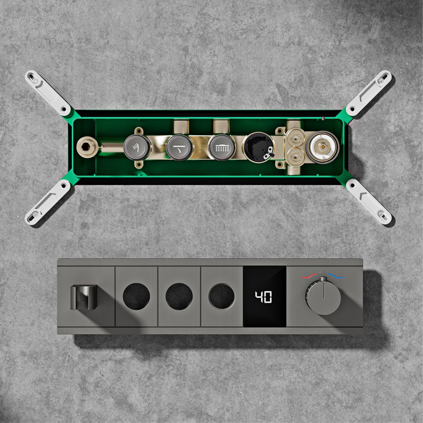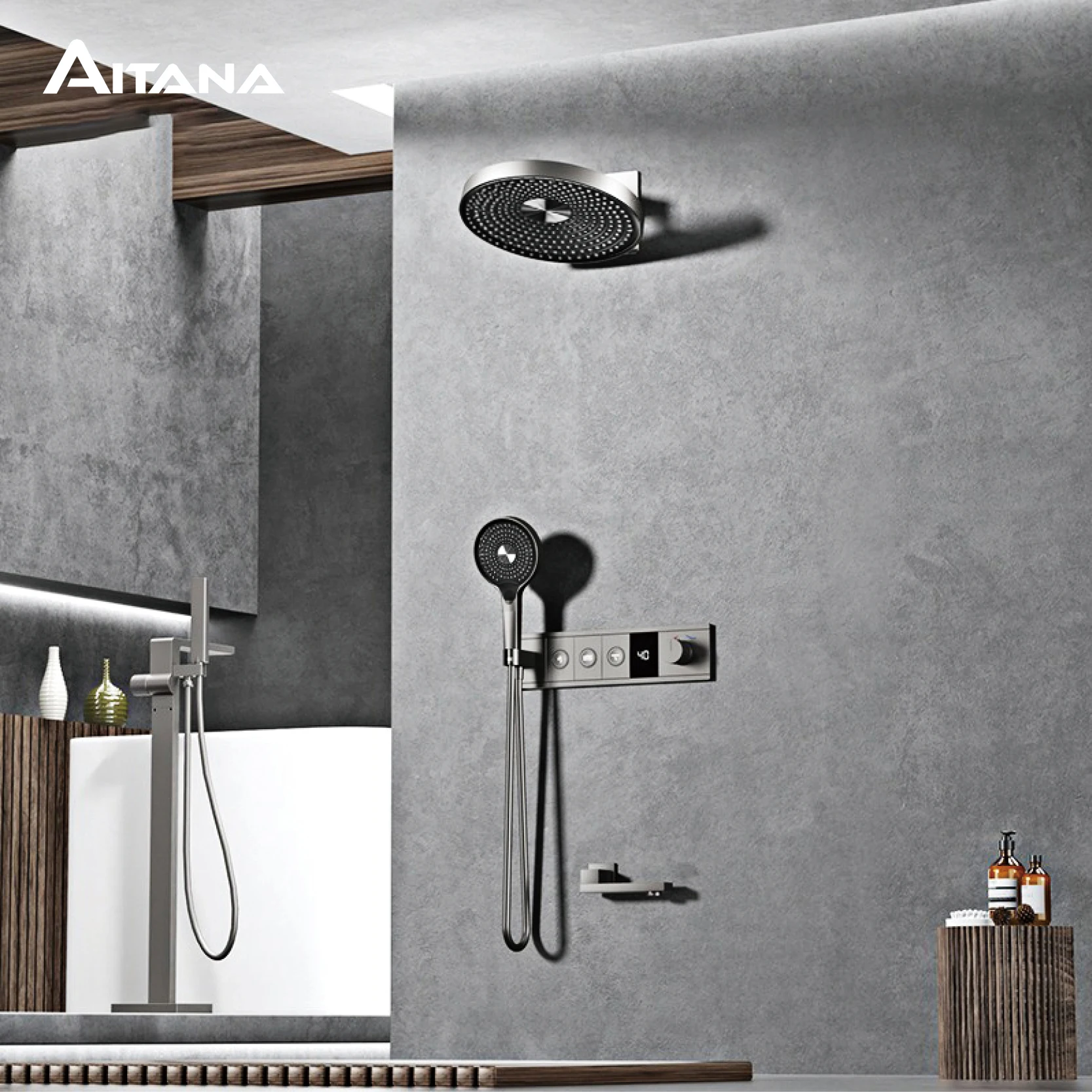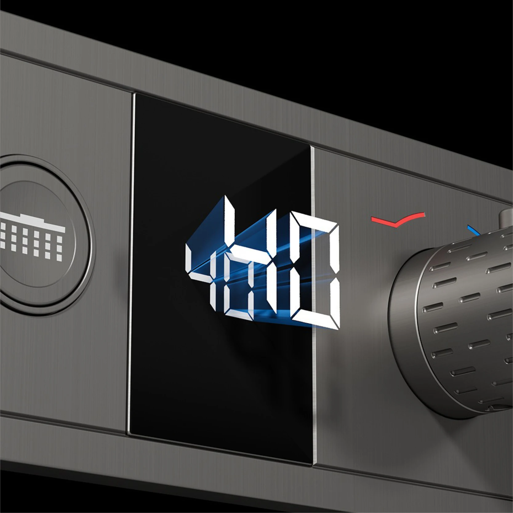 หรูหราปืนทองเหลืองสีเทาเพดานฝักบัวอาบน้ําอุณหภูมิคงที่ระบบจอแสดงผลดิจิตอล LED น้ําร้อนและเย็นฝังก๊อกน้ําห้องน้ํา
