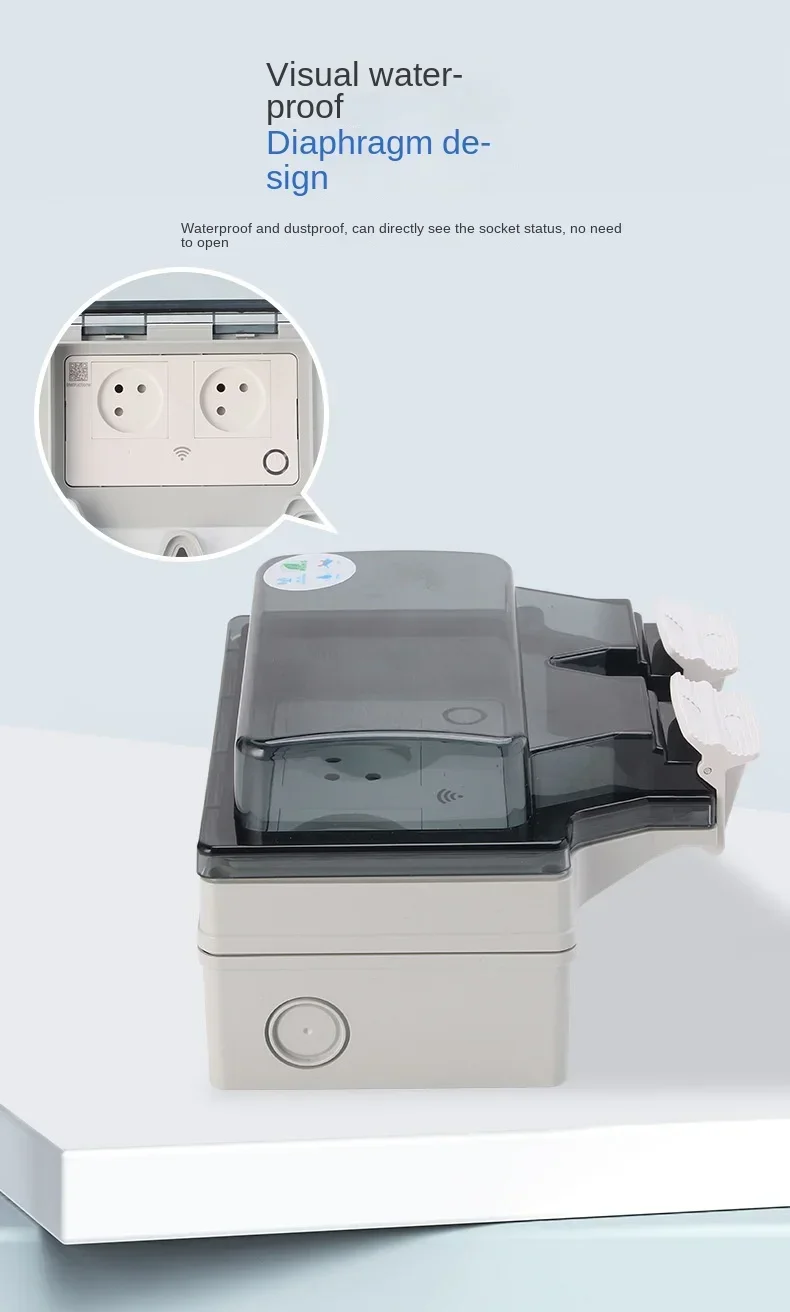 Tuya ปลั๊กไฟ IP66 กลางแจ้ง EU FR IL KR Wifi สมาร์ทกันน้ําซ็อกเก็ตกล่องสมาร์ทปลั๊กผนังพร้อมจับเวลาเครื่องใช้ในบ้าน 220V