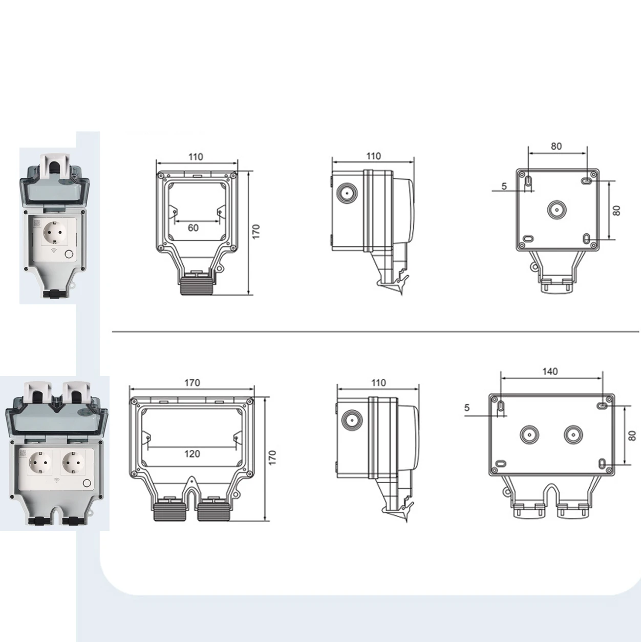ขนาด: 1 เต้ารับ: 110 x 170 x 110 มม. = 4.3 x 6.7 x 4.3 นิ้ว