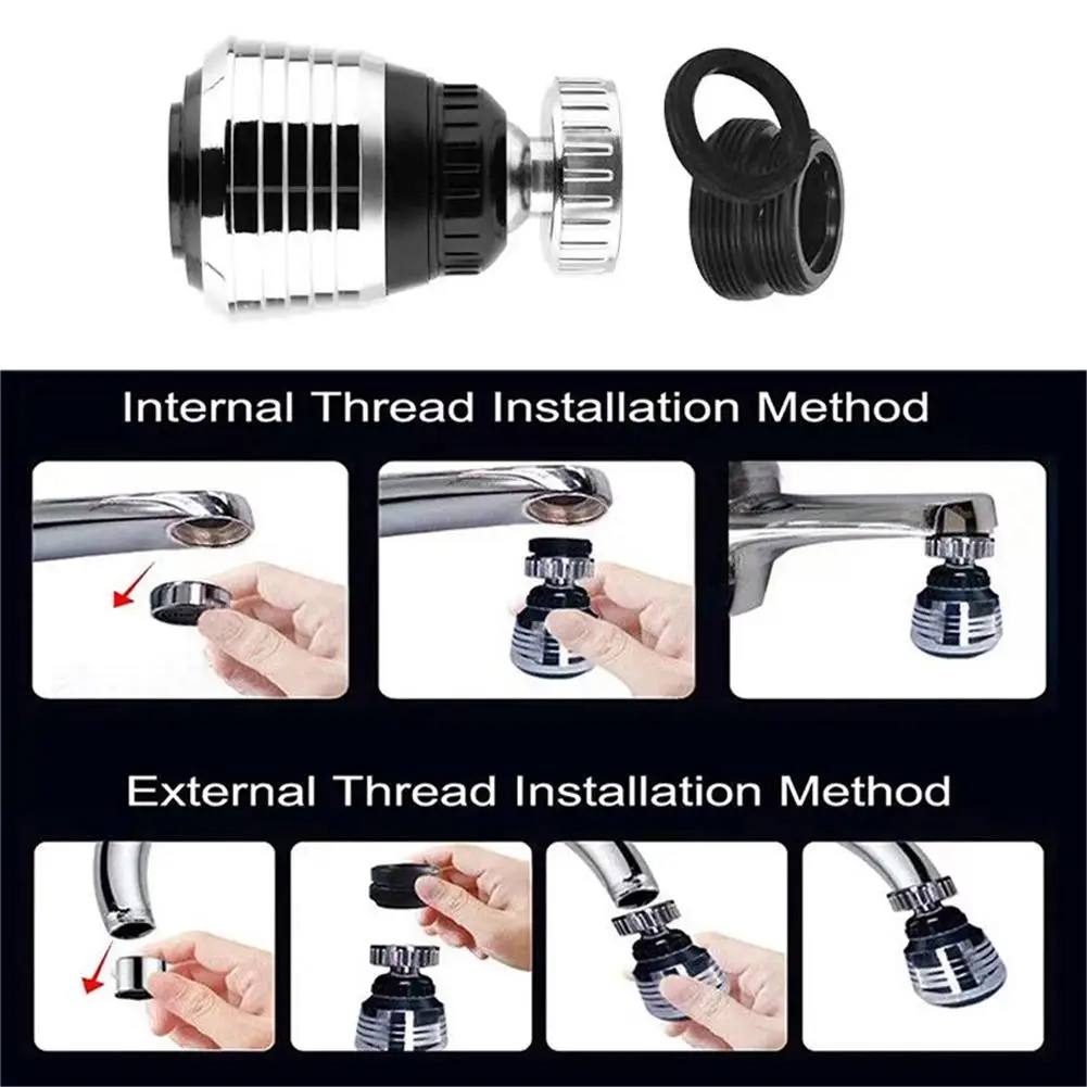 อะแดปเตอร์ตัวกรองหัวฉีดหมุนได้360ตัวกรองก๊อกน้ำในห้องครัวแบบสาดตัวกรองก๊อกน้ำแบบหมุนได้เพื่อประหยัด R9O8