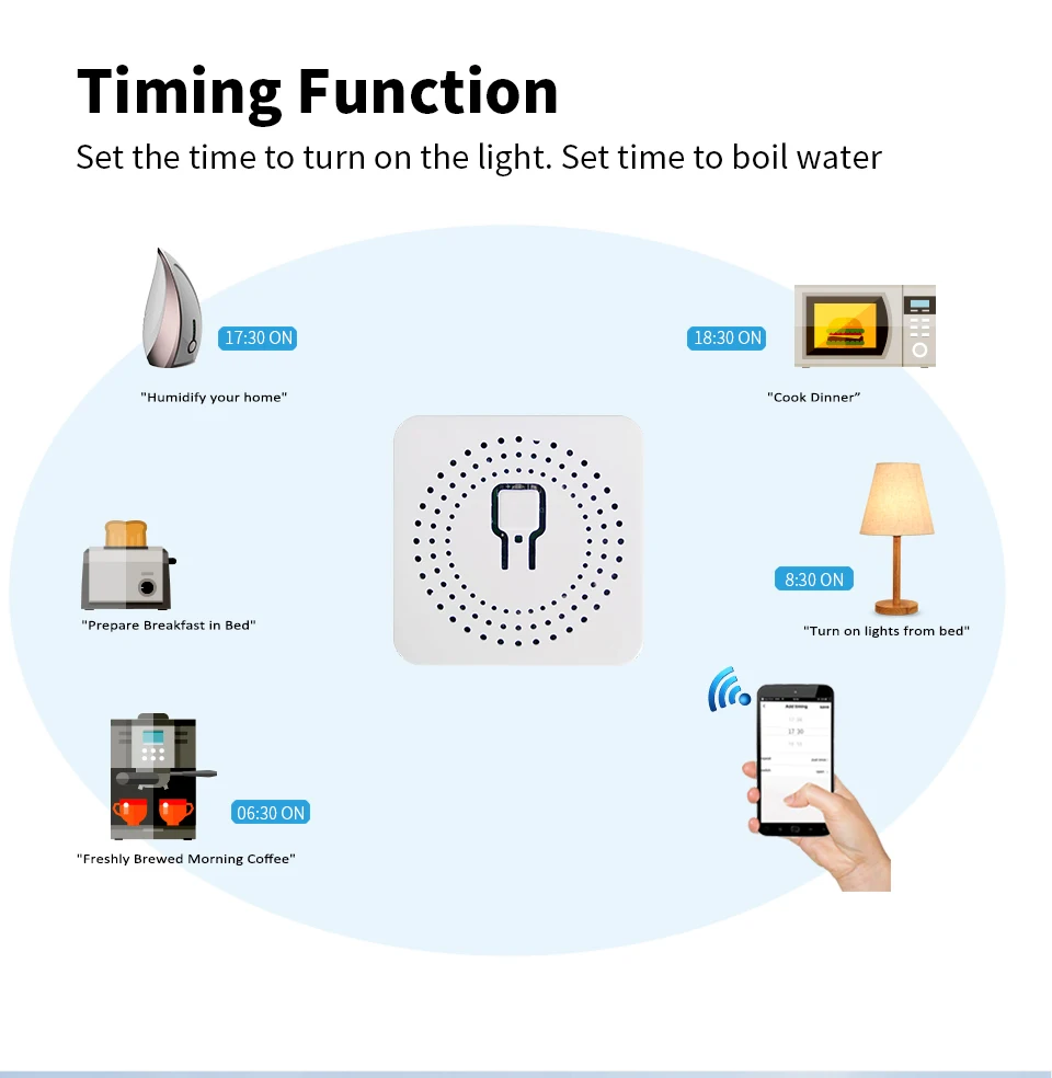 ※ฟังก์ชั่นจับเวลา: สร้างตารางเวลาเพื่อเปิด/ปิดเครื่องใช้ในบ้านหรือไฟส่องสว่างโดยอัตโนมัติช่วยให้คุณประหยัดพลังงานและค่าไฟฟ้า