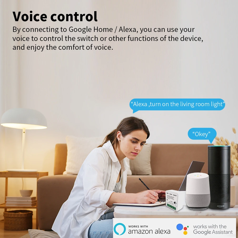 ※การควบคุมด้วยเสียง: สวิตช์ wifi DIY ทํางานร่วมกับ Alexa และ Google Home Assistant เพื่อควบคุมอุปกรณ์ได้อย่างสะดวกด้วยคําสั่งเสียงง่ายๆ เมื่อมือไม่ว่าง