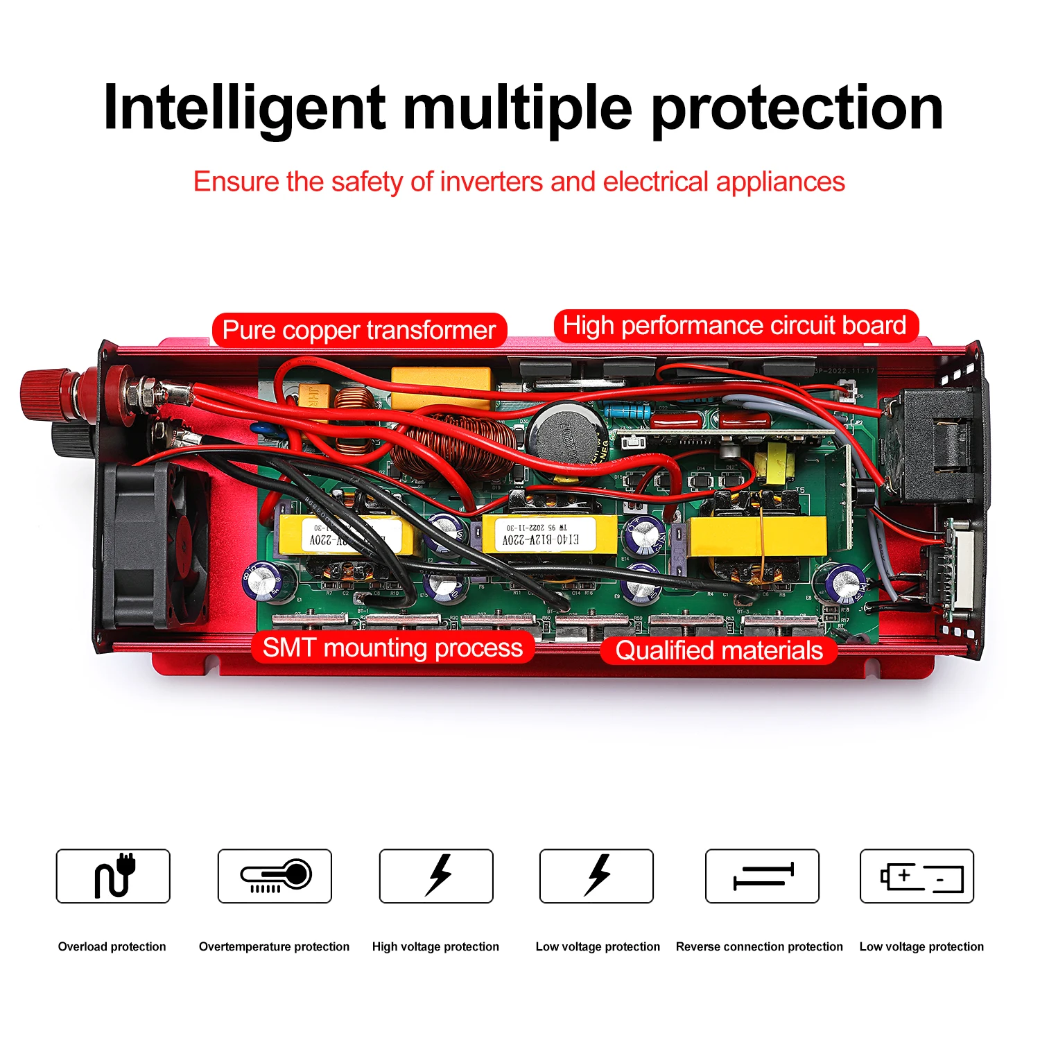 เครื่องแปลงไฟฟ้าอัจฉริยะ USB DC 12V เป็น AC 110/220V, เครื่องแปลงไฟรถยนต์3000W เครื่องแปลงพลังงานดิจิตอลสำหรับ RV Caravan