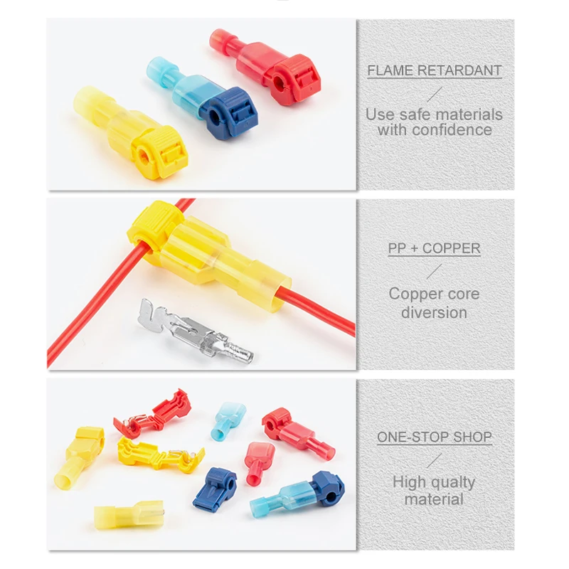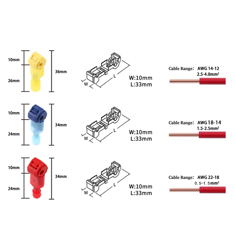 T-Tap Stripping ฟรี Quick ตัวเชื่อมต่อสายไฟขั้วต่อสายไฟ Self-Stripping ฉนวนชาย Disconnect ล็อคสาย CRIMP