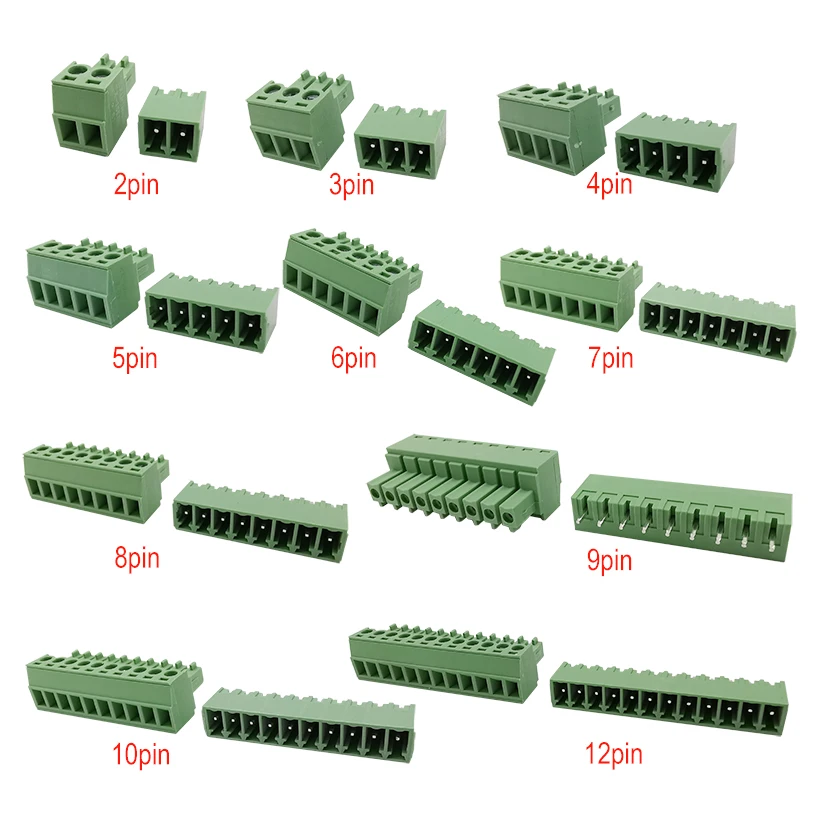 5 Pairs 15EDG 3.81mm 2/3/4/5/6/7/8/9/10/12 Pin PCB Screw Terminal Block Wire Connector Pin Header Plug Socket Green