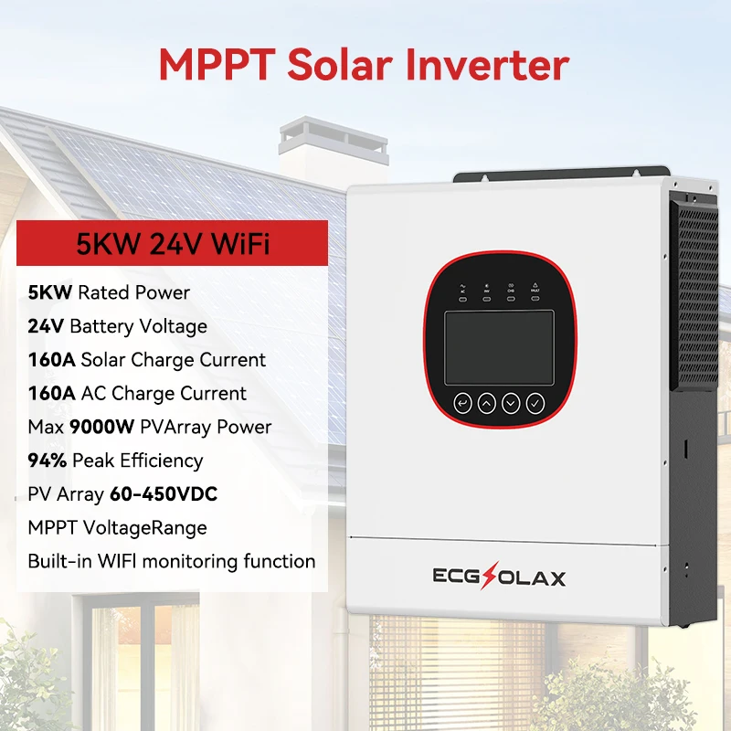 ECGSOLAX 5KW 6.5KW Hybrid อินเวอร์เตอร์พลังงานแสงอาทิตย์ 24V 48V 220Vac พร้อม MPPT 120A 160A เครื่องชาร์จพลังงานแสงอาทิตย์ Pure Sine WAVE อินเวอร์เตอร์ WIFI ในตัว