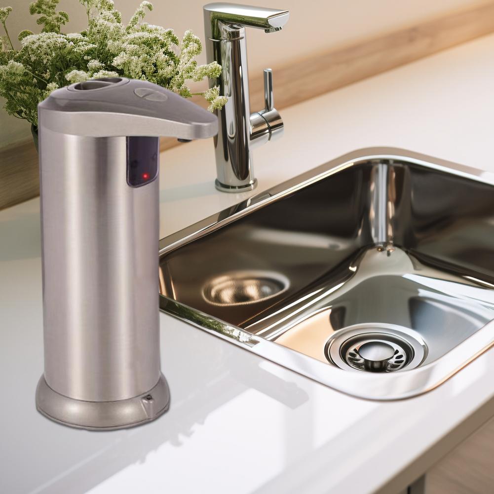 เครื่องจ่ายสบู่แบบไร้สัมผัส เครื่องจ่ายสบู่อัตโนมัติ เครื่องจ่ายสบู่เหล็กสแตนเลสแบบสัมผัส ปรับระดับเสียงได้ 3 โหมดฟรี
