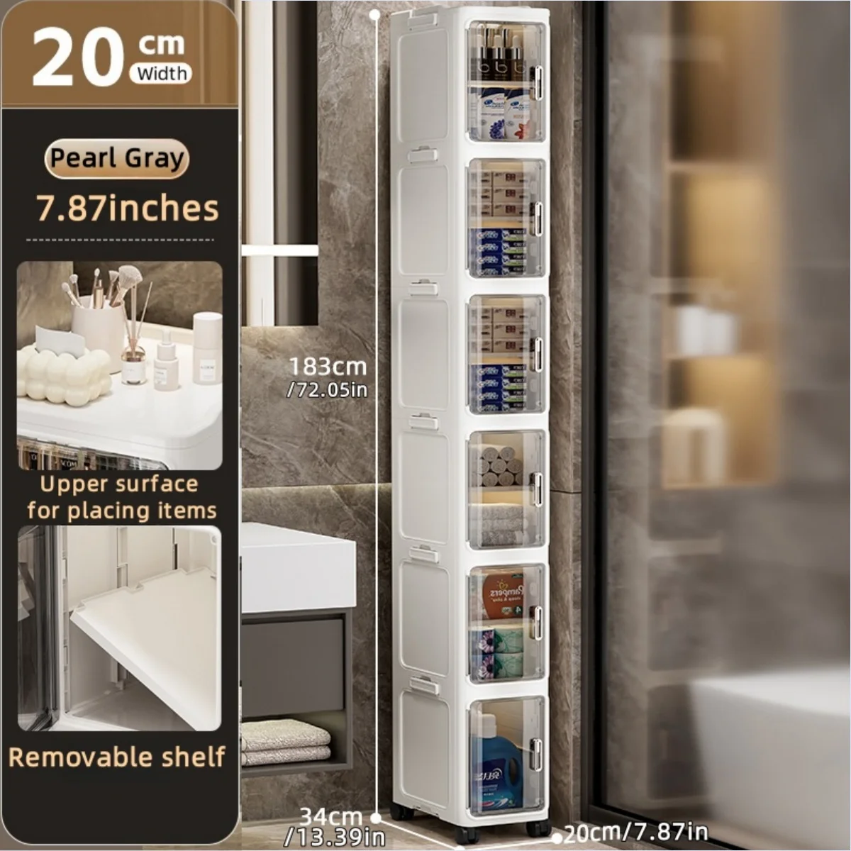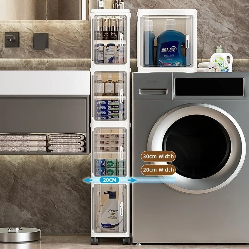 ตู้เก็บของแบบพับได้ โปร่งใส บางเฉียบ พร้อมล้อ กันน้ำ กันฝุ่น ประหยัดพื้นที่ สำหรับจัดระเบียบห้องน้ำ ห้องครัว