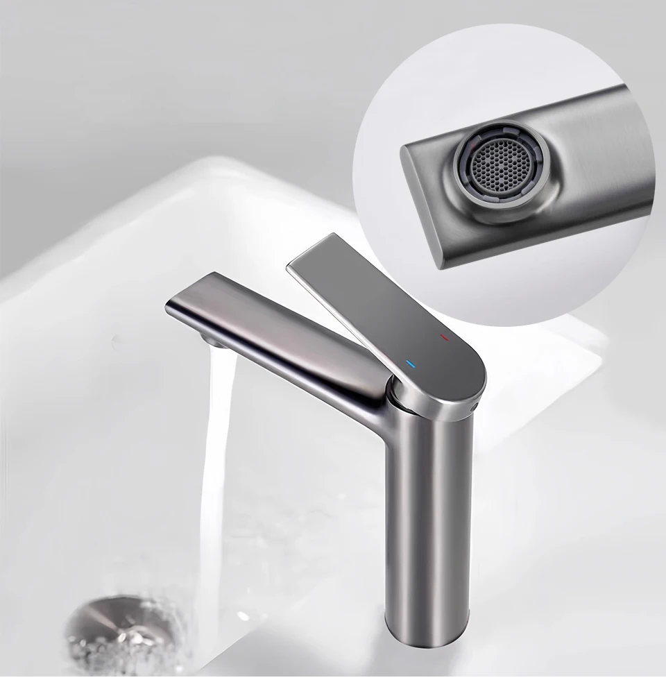 【ควบคุมง่าย】ก๊อกผสมสำหรับอ่างล้างหน้ามาพร้อมกับมือจับสำหรับน้ำร้อนและน้ำเย็น ใช้งานด้วยคันโยกเดียวเพื่อควบคุมอุณหภูมิและการไหลของน้ำได้อย่างง่ายดาย ออกแบบให้มีรูเดียวเพื่อการติดตั้งที่สะดวกเหนือเคาน์เตอร์ใช้ช่องระบายแบบรังผึ้ง ระบายน้ำได้อย่างรวดเร็ว ป้องกันการกระเด็นได้อย่างมีประสิทธิภาพตลับเซรามิกคุณภาพพรีเมียม รับประกันการเปิด-ปิดได้มากกว่า 5,000,000 ครั้ง มอบประสิทธิภาพการซีลที่ยอดเยี่ยม ปราศจากการรั่วซึมและลดการสิ้นเปลือง