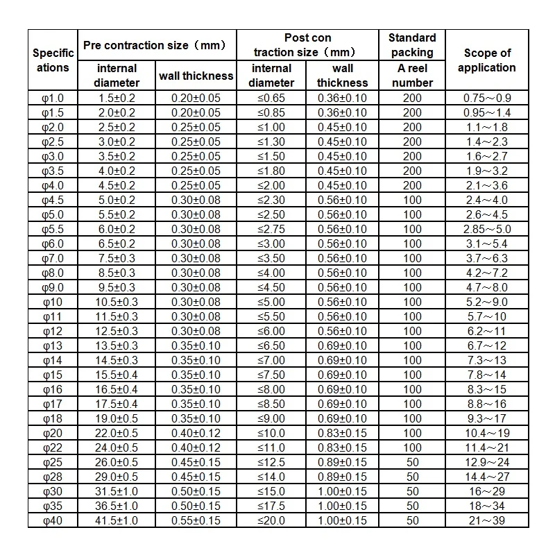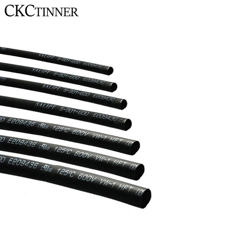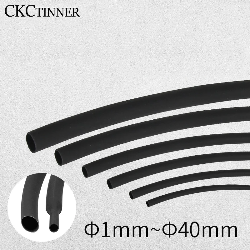 1/5 เมตร 2:1 รอบเส้นผ่านศูนย์กลาง 1 มม./1.5 มม./2 มม./3 มม./4 มม./5 มม./6 มม.-40 มม.ความยาวความร้อนหดหลอดสีดําลวดห่อขาย