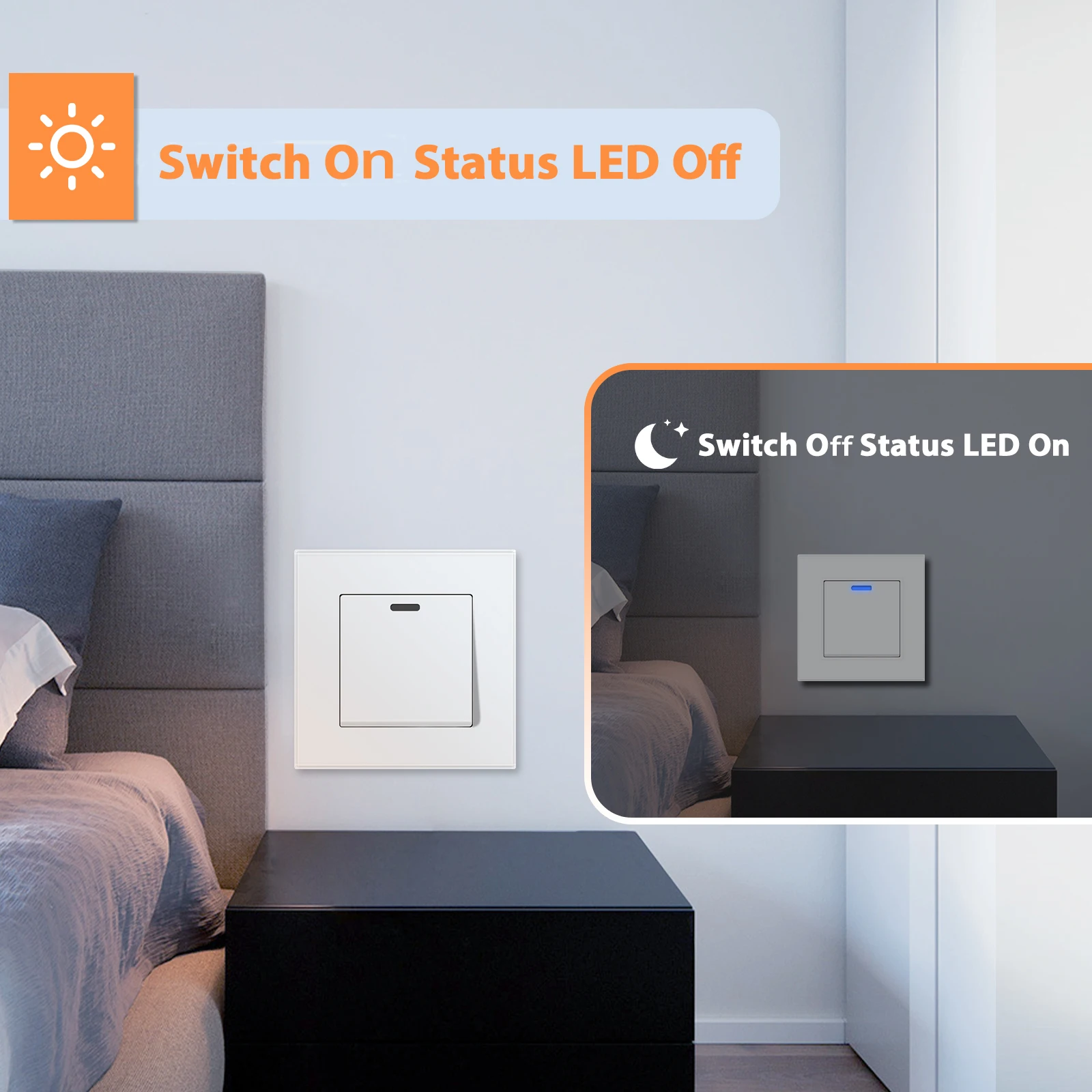 BSEED EU มาตรฐานสวิทช์ไฟผนัง 1/2Gang 1Way สลับสวิทช์แผงกระจก Mechanical Wall สวิทช์ปิด 10A 250V Blue Backlight