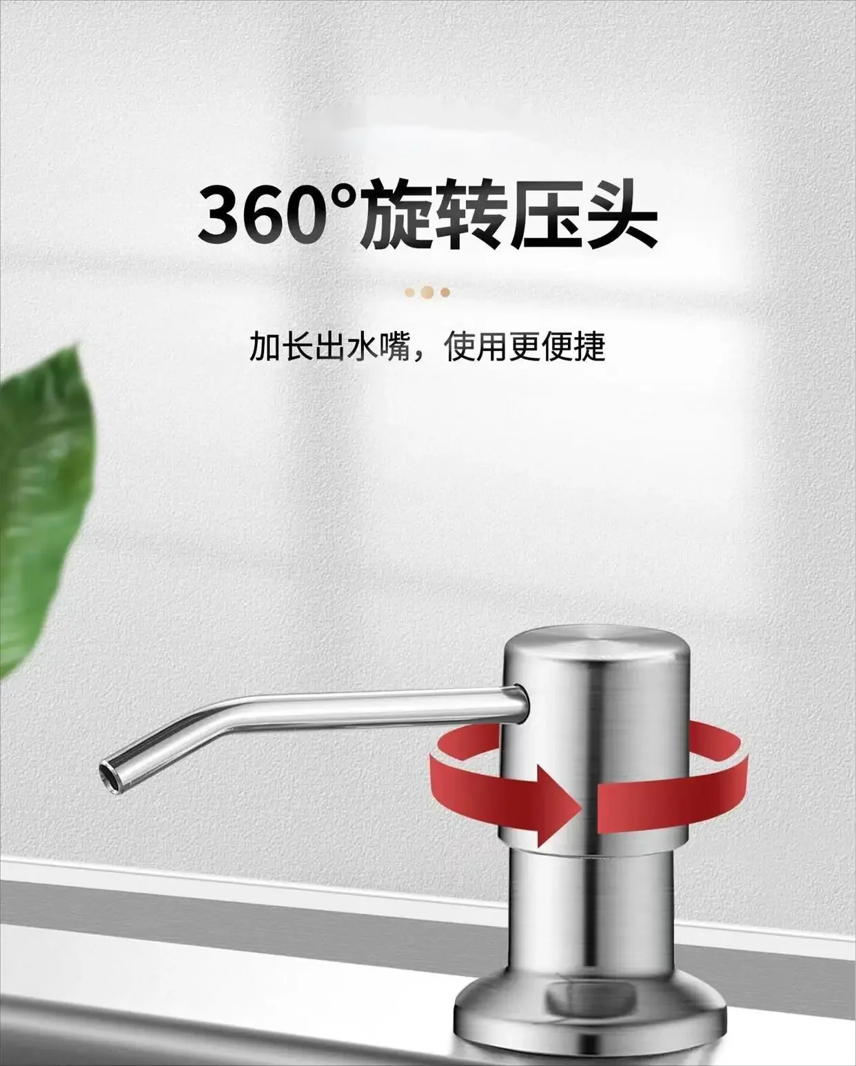 【2】สามารถปั๊มน้ำยาล้างจานลงในอ่างล้างจานที่ผลิตด้วยวัสดุคุณภาพได้ ใช้เป็นเครื่องจ่ายสบู่หรือเป็นเครื่องจ่ายโลชั่น