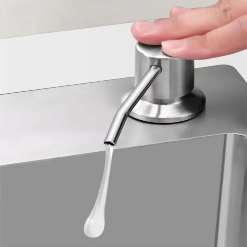 ที่จ่ายสบู่เหลวแบบปั๊มสำหรับอ่างล้างจาน ขวดสบู่เหลวสแตนเลส ติดตั้งบนอ่างล้างจาน แบบกดด้วยมือ