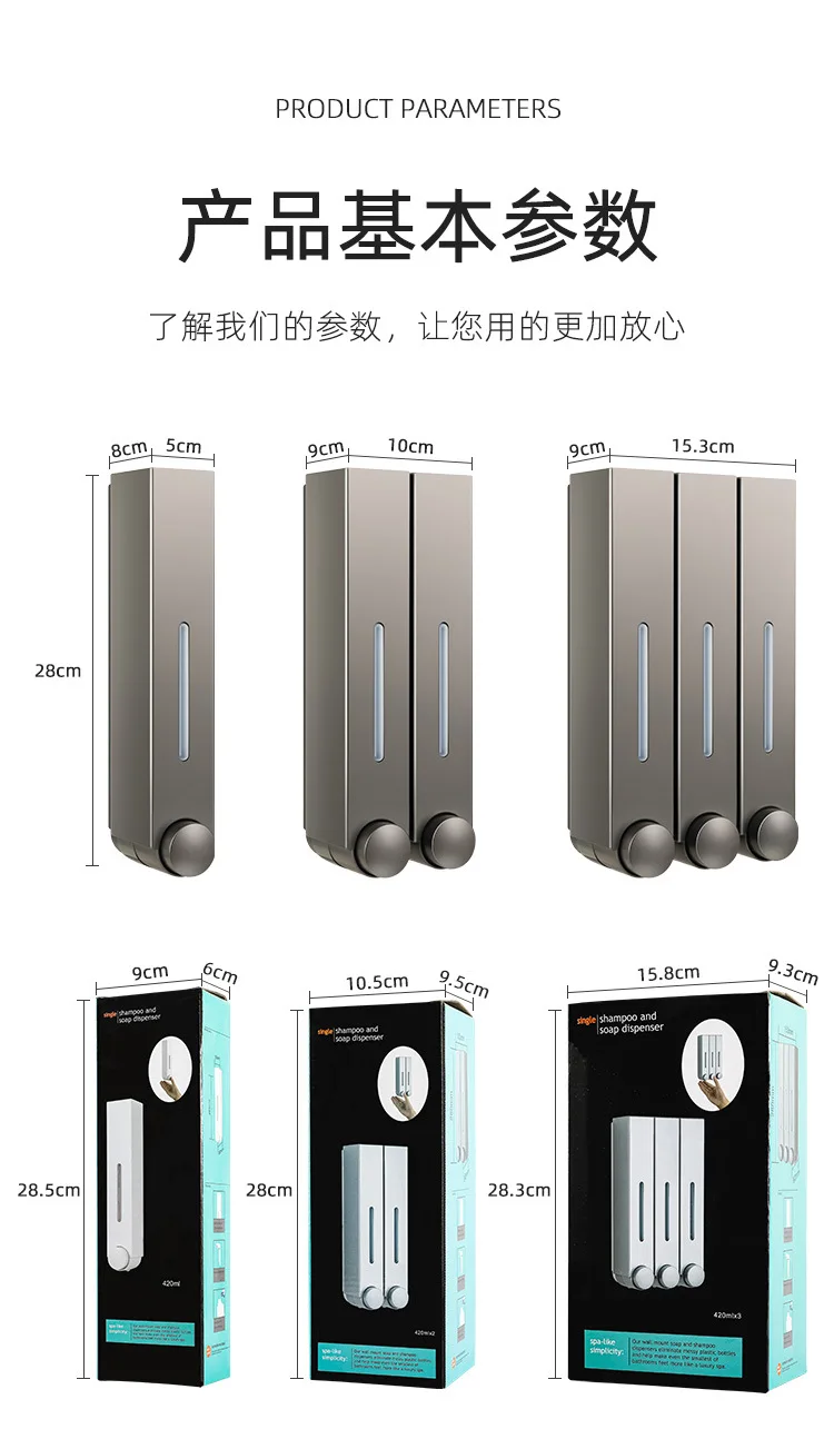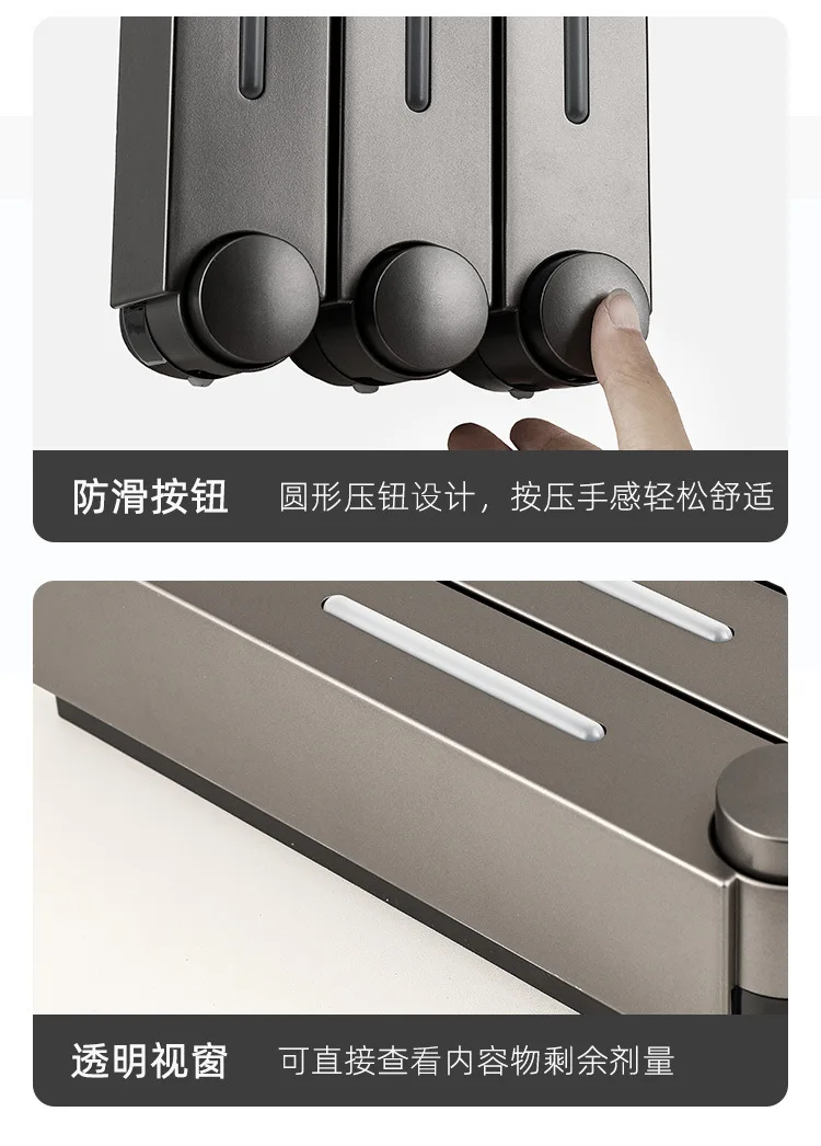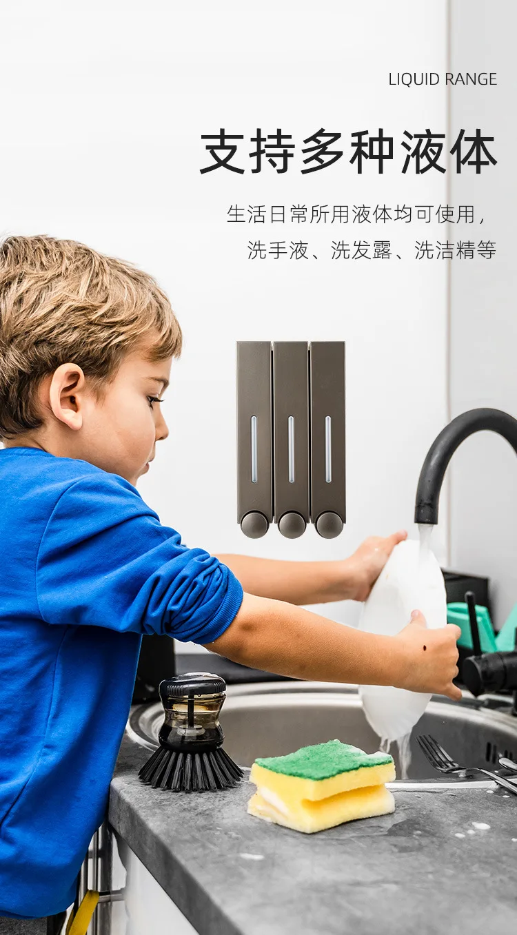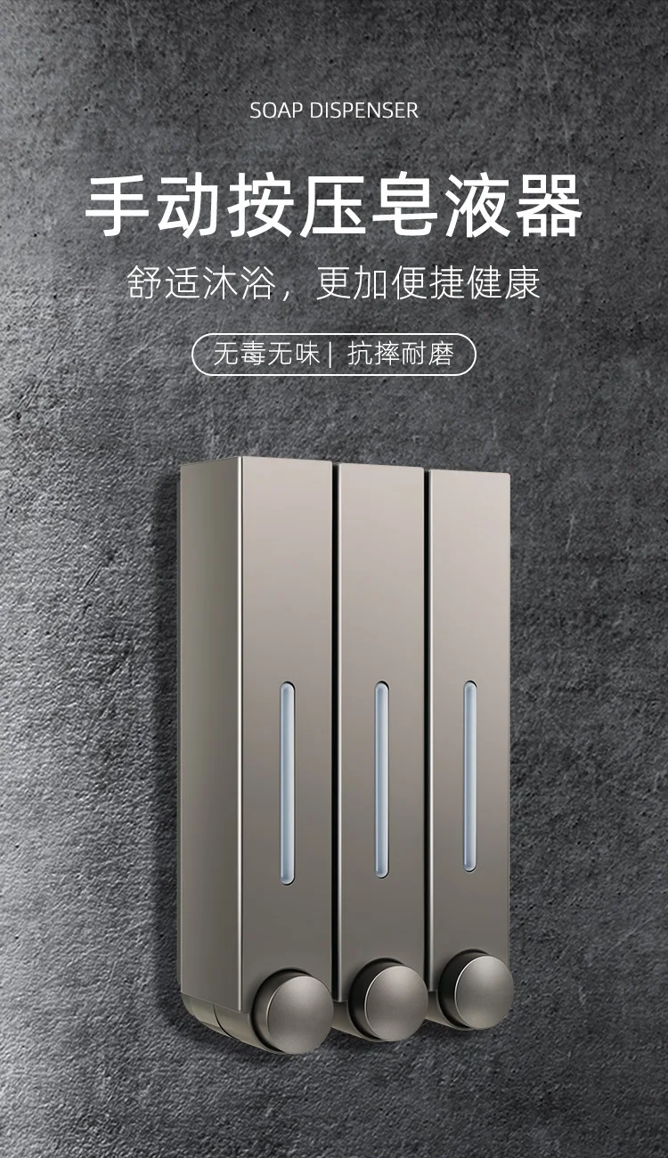 สไตล์ใหม่โรงแรมห้องครัวห้องน้ําคู่มือติดผนังเครื่องจ่ายสบู่เจลอาบน้ําแชมพูกดประเภทสบู่เหลว