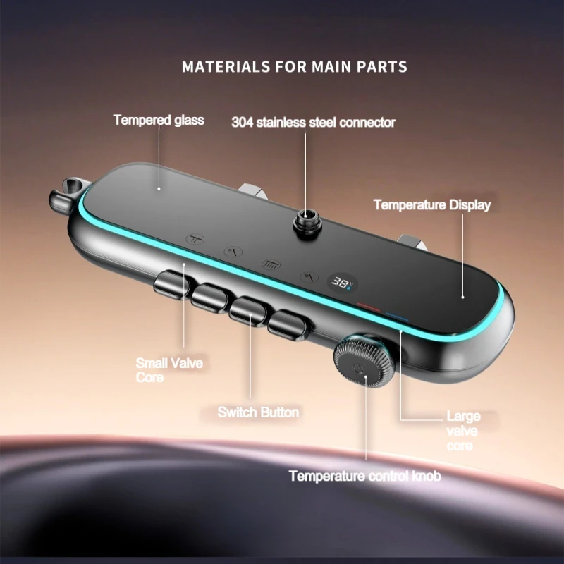 ชุดฝักบัวพร้อมจอแสดงผลอุณหภูมิแบบดิจิตอล ก๊อกน้ำฝักบัวติดผนัง ก๊อกน้ำอ่างอาบน้ำ ก๊อกน้ำผสมน้ำร้อนน้ำเย็น ระบบฝักบัว