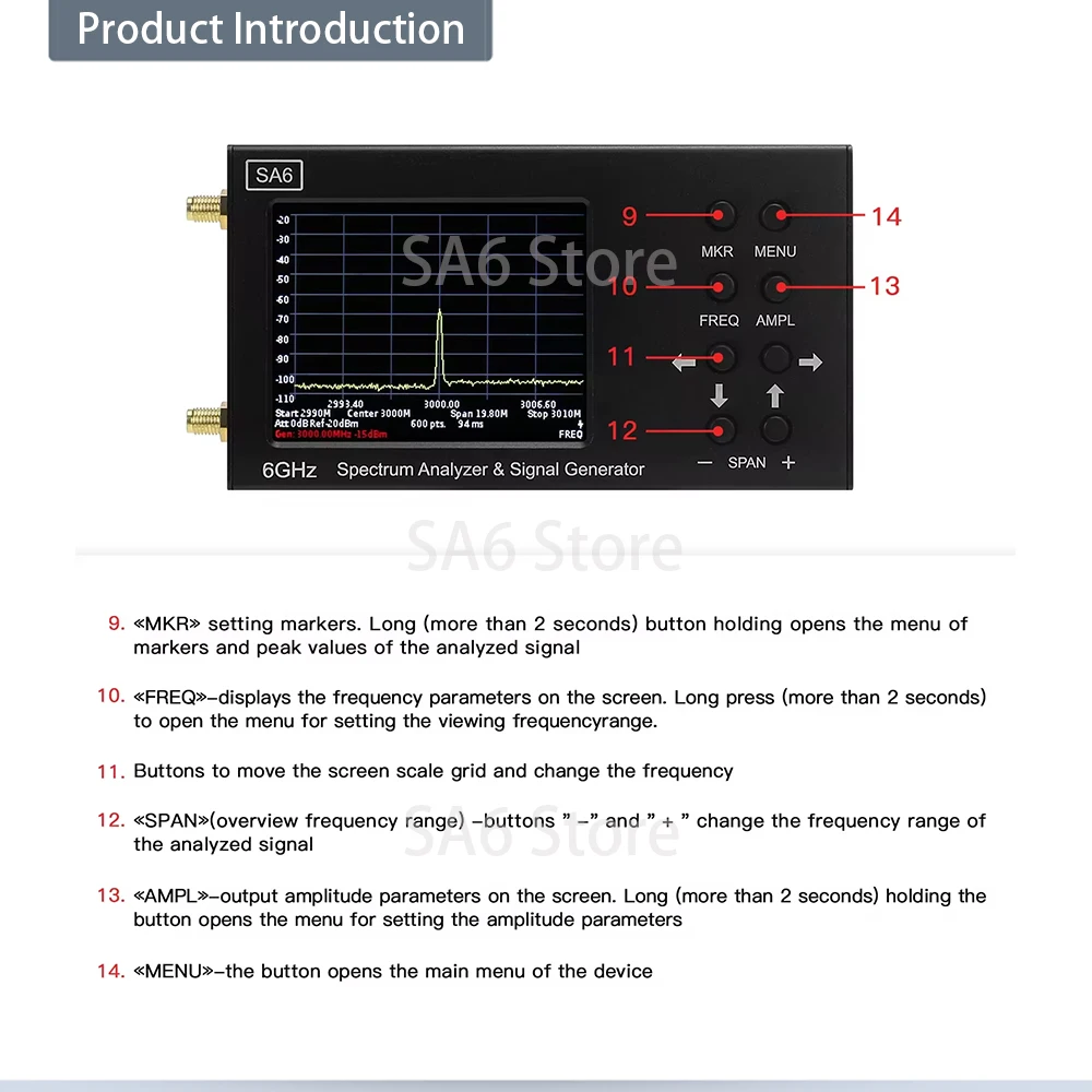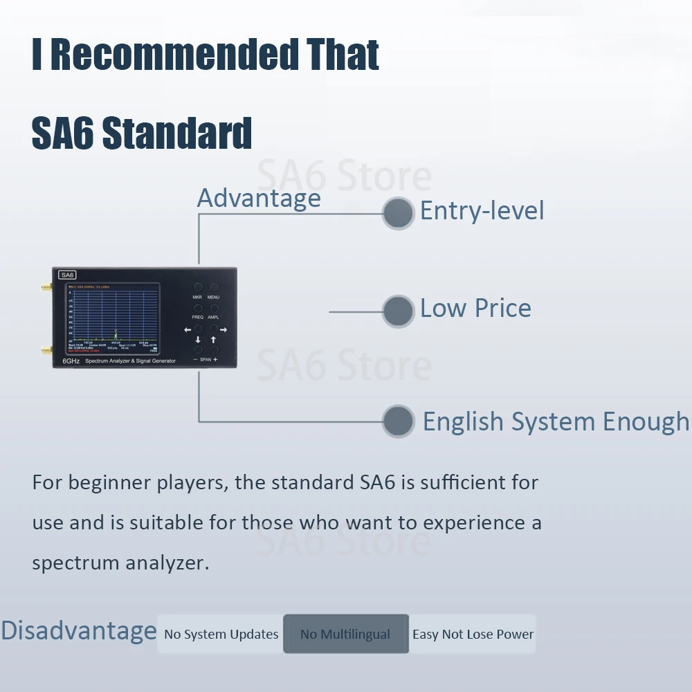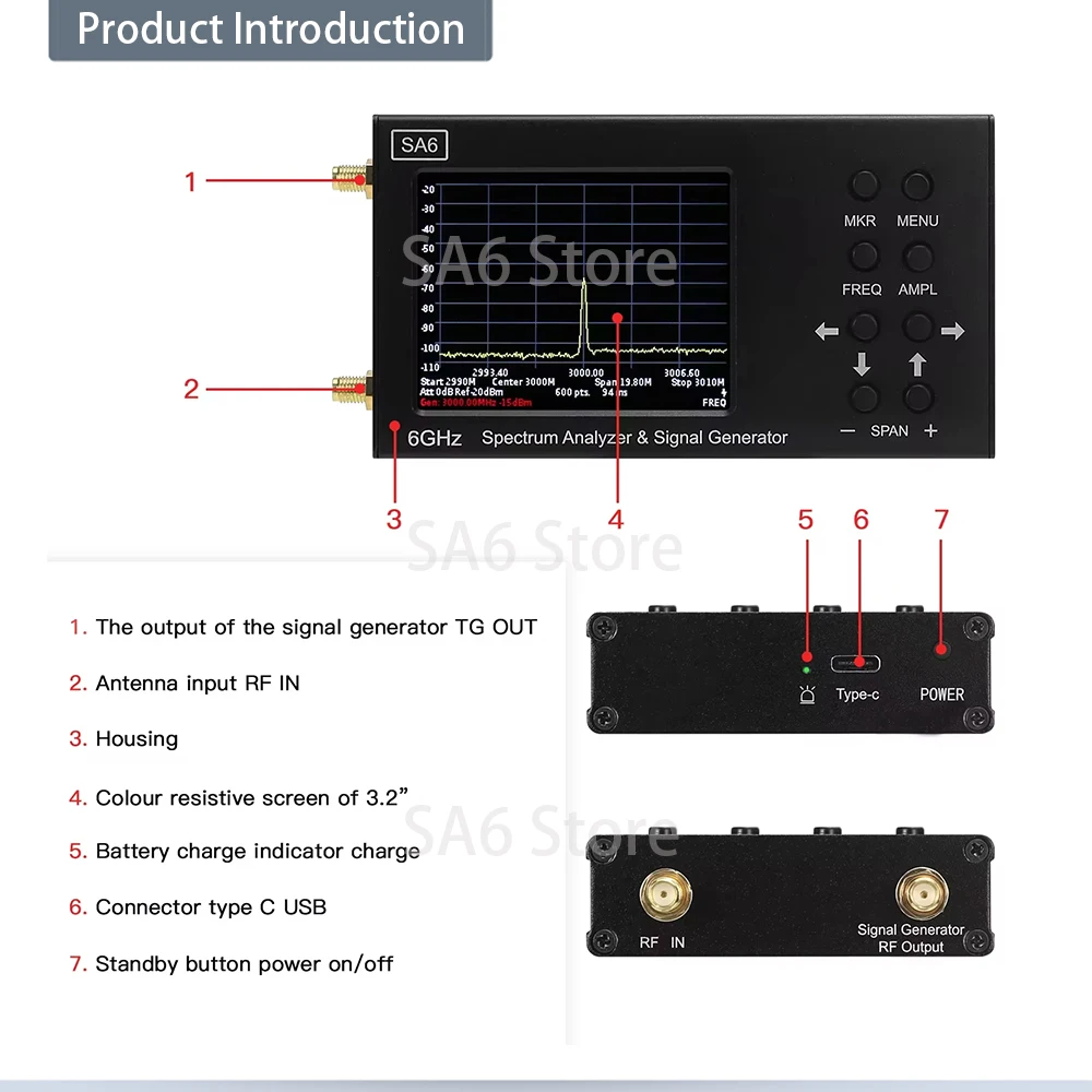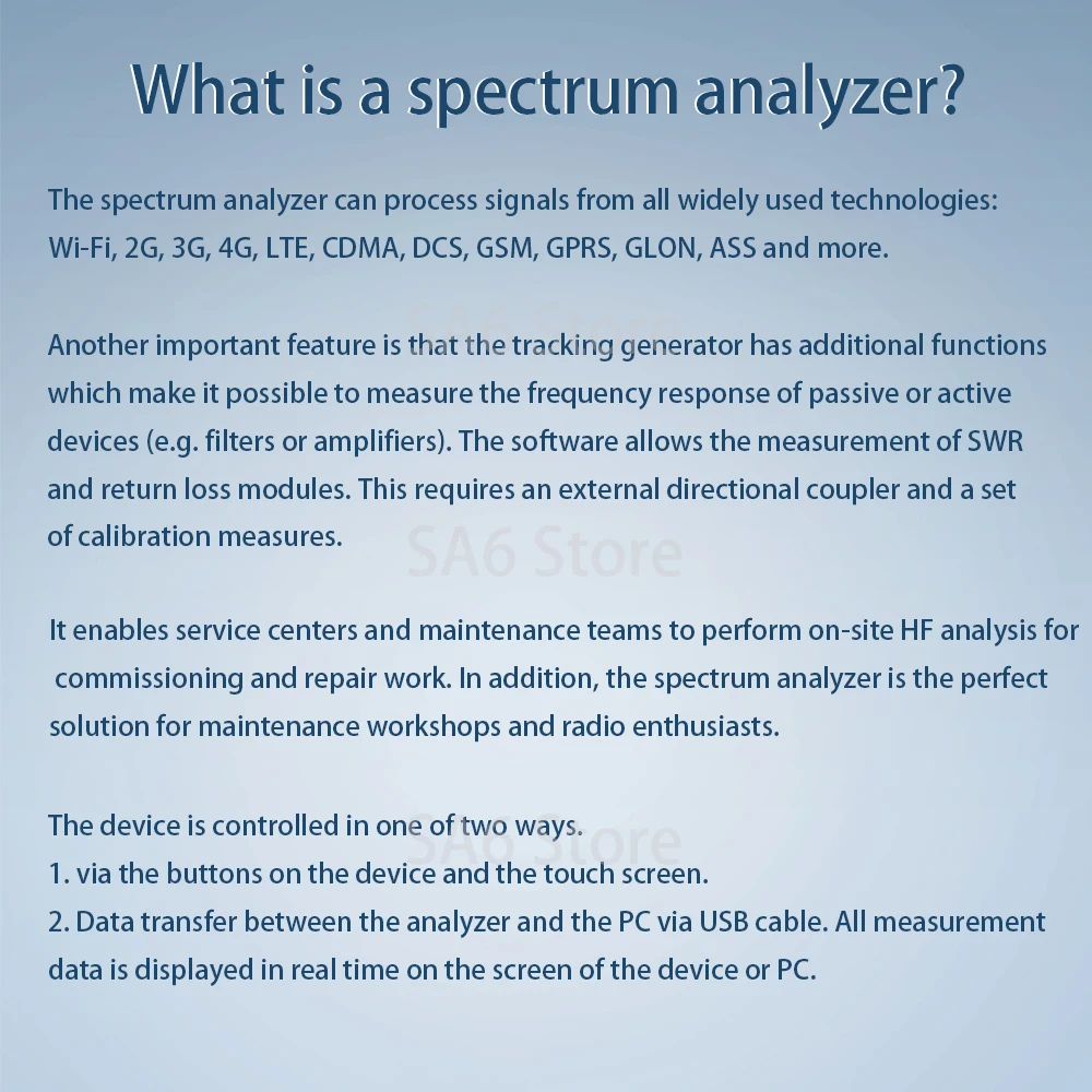 SA6 เครื่องวิเคราะห์สเปกตรัม 6GHz 35-6200MHz สัญญาณให้ซอฟต์แวร์ PC วัดสัญญาณวิทยุทิศทางเข็มทิศ
