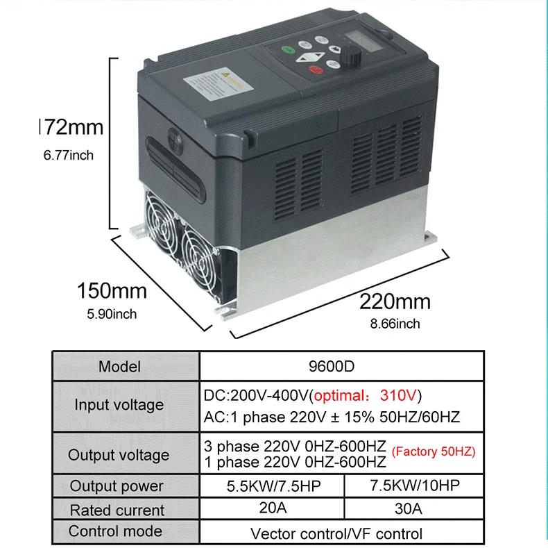 VFD 220V 5.5KW/7.5KW พลังงานแสงอาทิตย์ความถี่ตัวแปรปั๊มน้ําไดรฟ์อินเวอร์เตอร์ Converter สําหรับ 3 เฟสมอเตอร์ควบคุมความเร็ว
