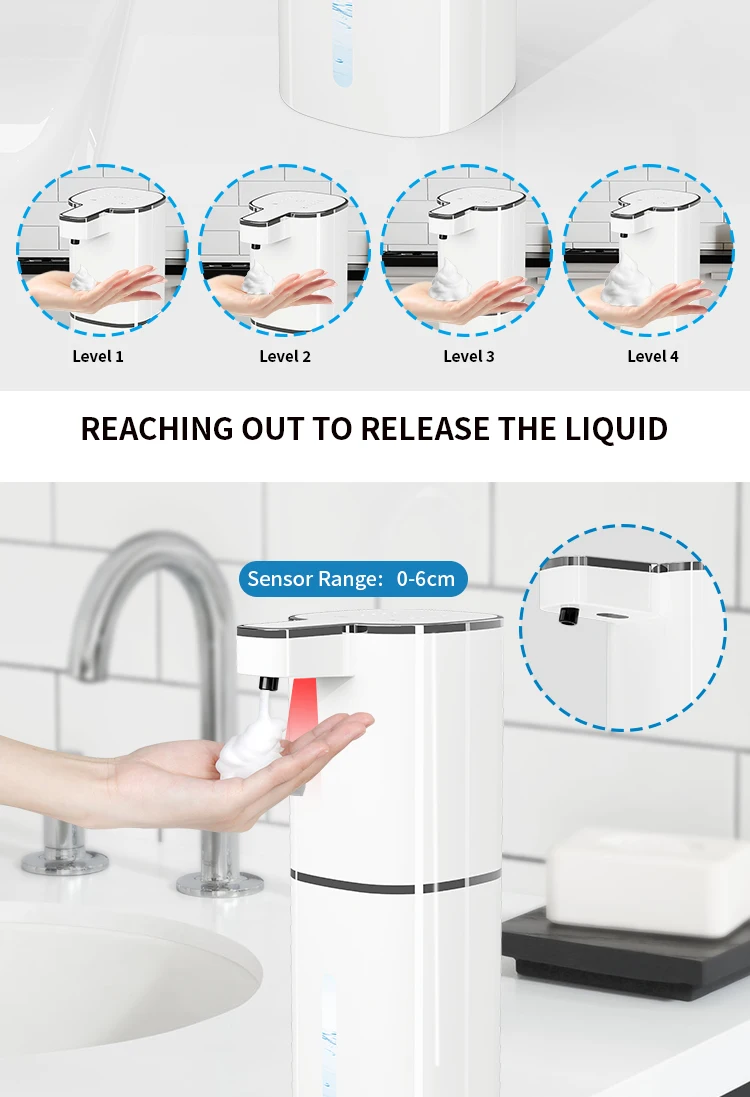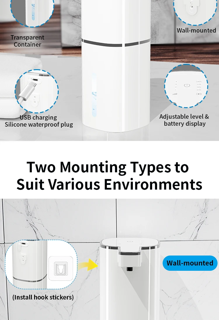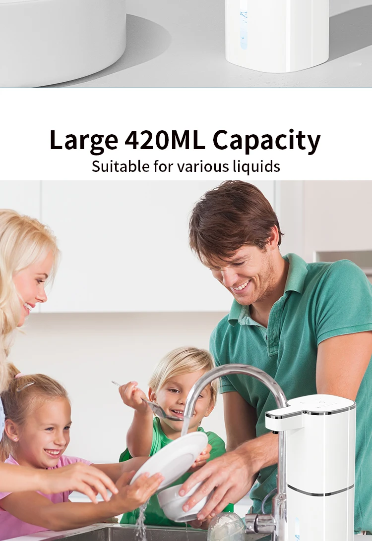 เครื่องจ่ายสบู่อัตโนมัติ 420ML แบบไร้สัมผัส ชาร์จไฟผ่าน USB Type-C เครื่องจ่ายสบู่ไฟฟ้า กันน้ำ สำหรับโฟม/ของเหลว