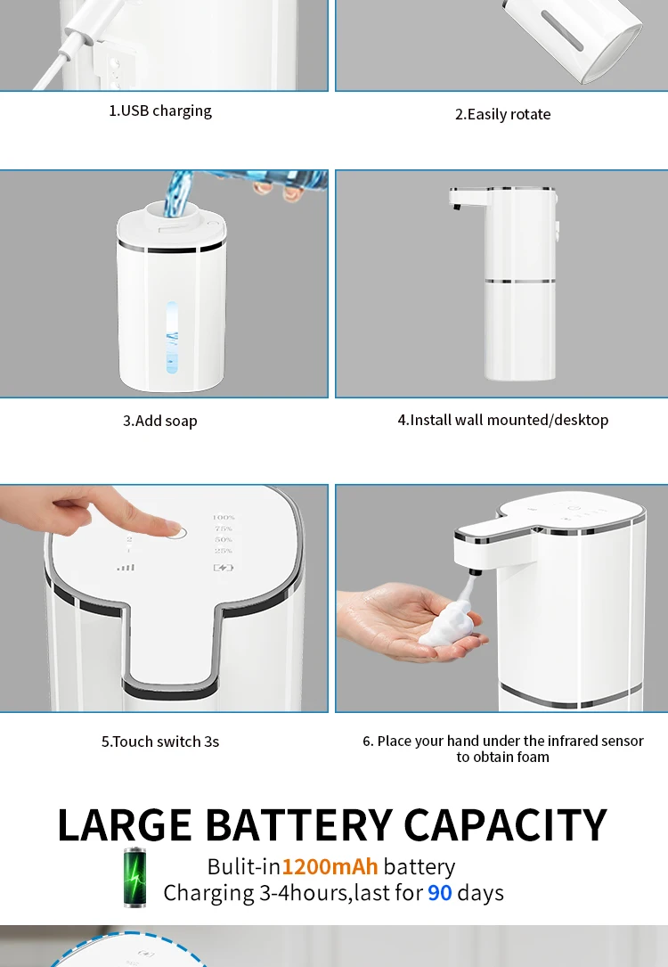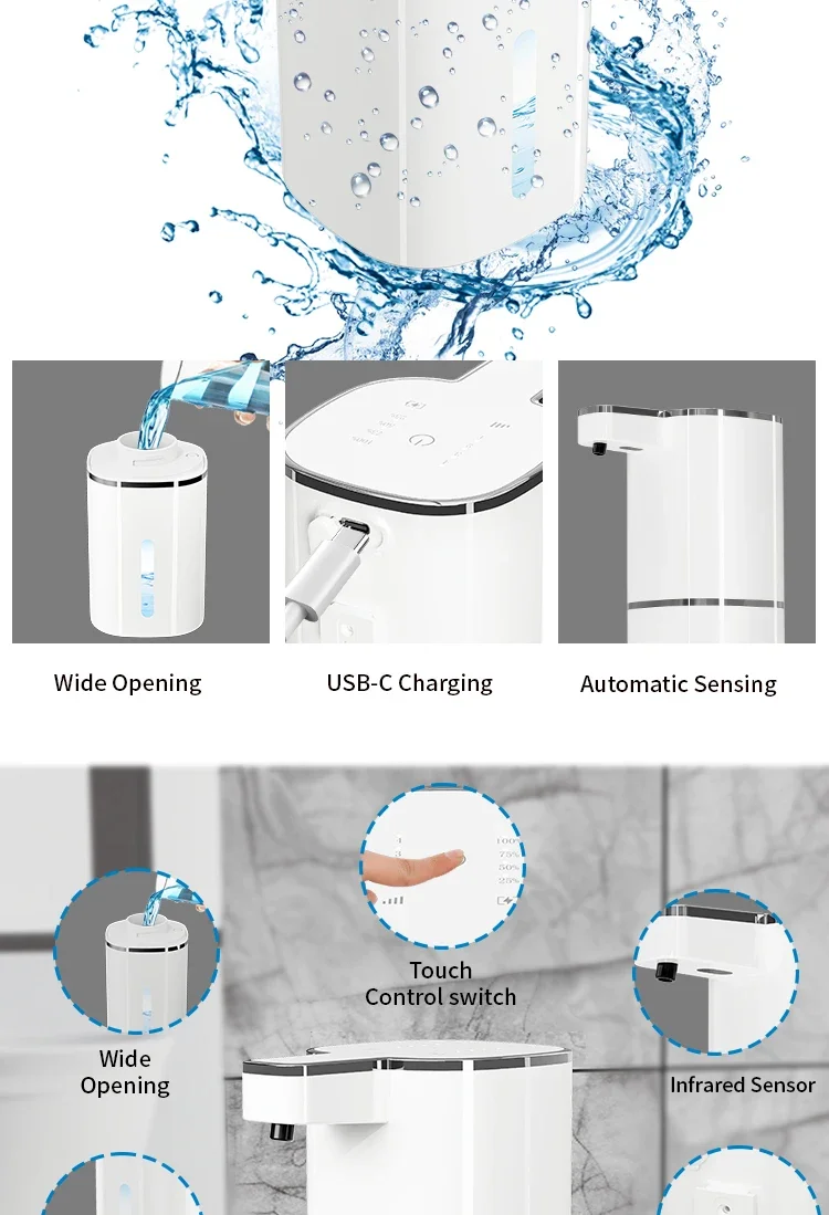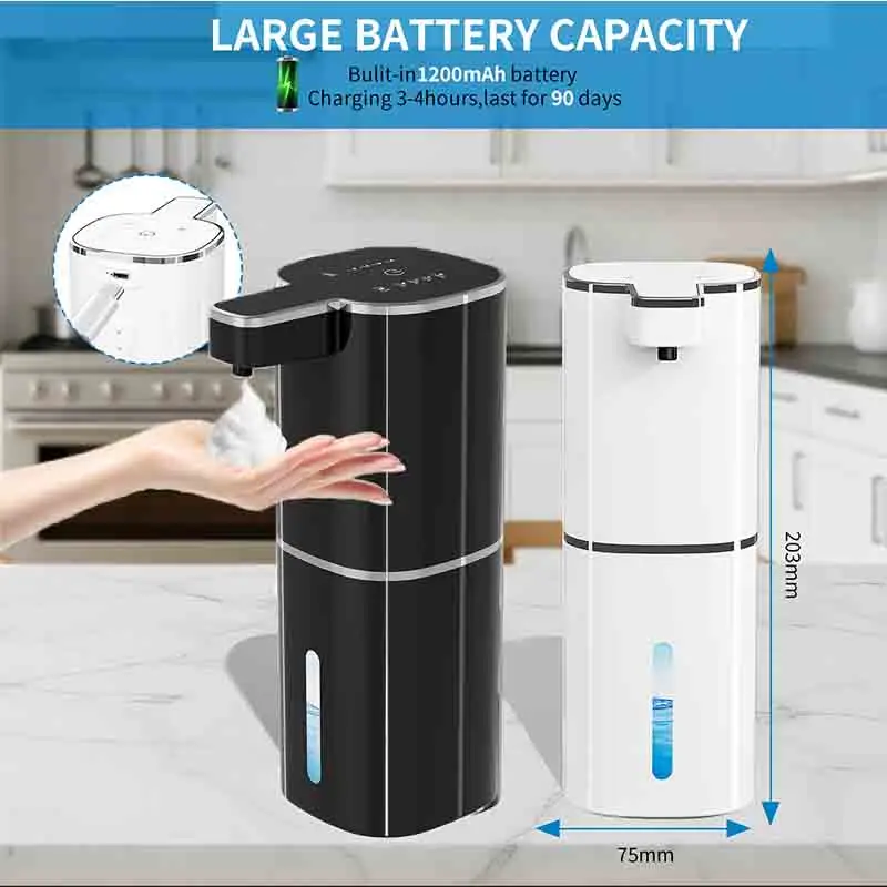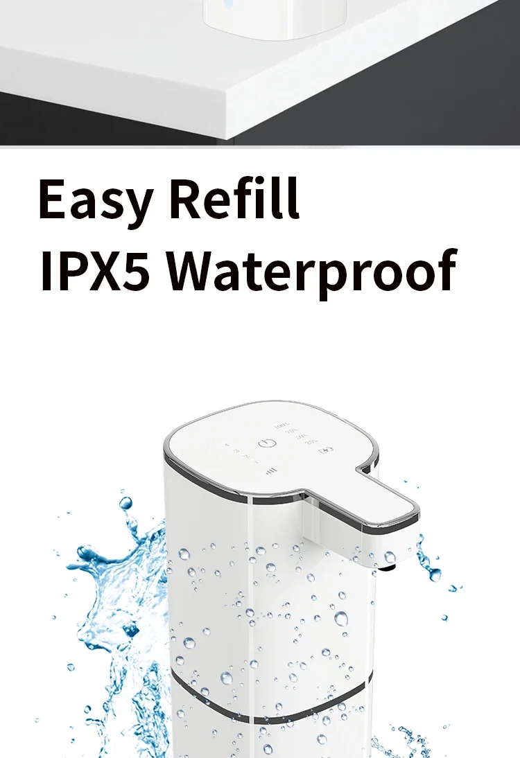 เครื่องจ่ายสบู่อัตโนมัติ 420 มล. แบบไร้สัมผัส ชาร์จผ่าน USB Type C เครื่องจ่ายสบู่ไฟฟ้าแบบกันน้ำ สำหรับสบู่โฟม/น้ำ