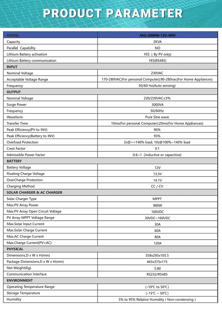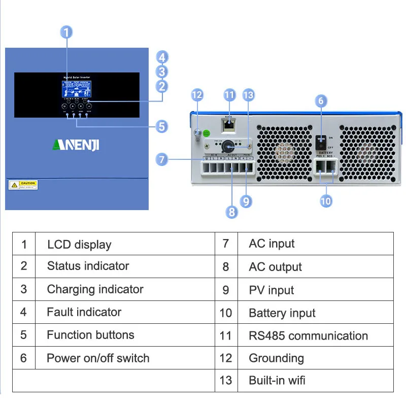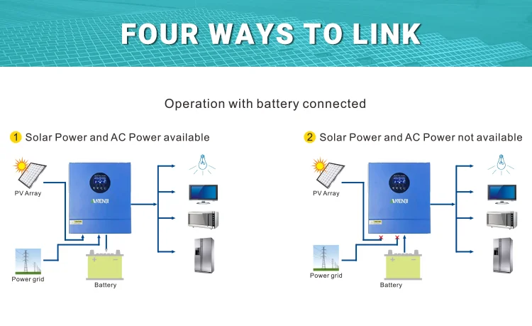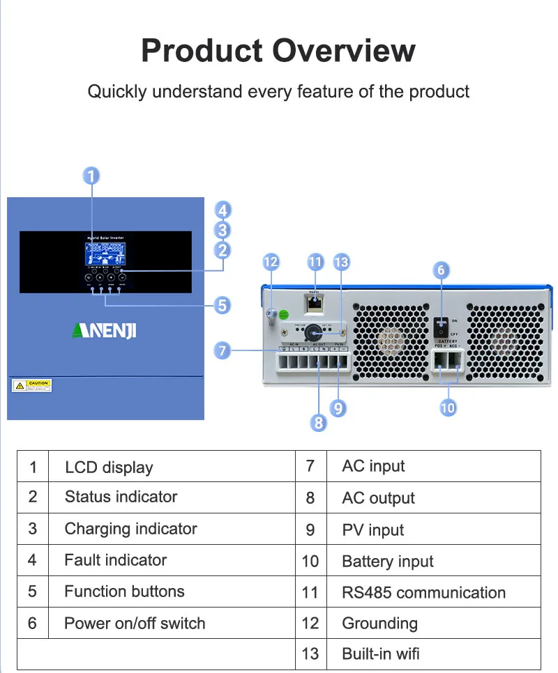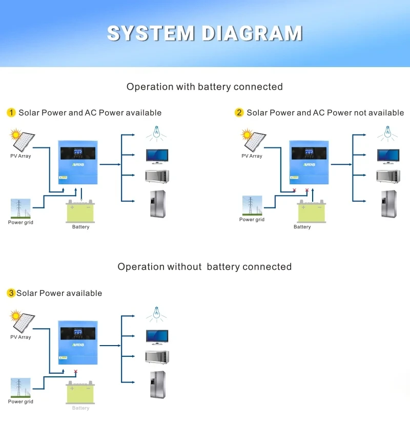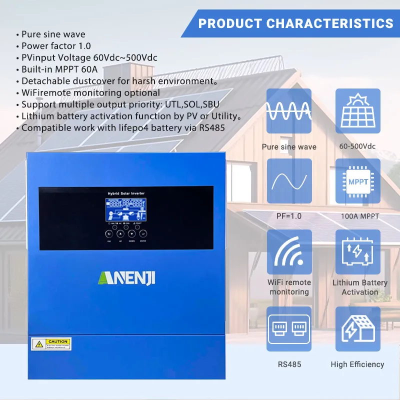 นี่คืออินเวอร์เตอร์/เครื่องชาร์จแบบมัลติฟังก์ชั่น ซึ่งรวมฟังก์ชันของอินเวอร์เตอร์ เครื่องชาร์จพลังงานแสงอาทิตย์ และเครื่องชาร์จแบตเตอรี่เข้าด้วยกัน เพื่อให้รองรับพลังงานอย่างต่อเนื่องในขนาดพกพา จอแสดงผล LCD ที่ครอบคลุมของ lts ให้การทำงานของปุ่มที่ผู้ใช้กำหนดได้และเข้าถึงได้ง่าย เช่น กระแสไฟชาร์จแบตเตอรี่ AC/ลำดับความสำคัญของเครื่องชาร์จพลังงานแสงอาทิตย์ และแรงดันไฟฟ้าอินพุตที่ยอมรับได้ตามการใช้งานที่แตกต่างกัน