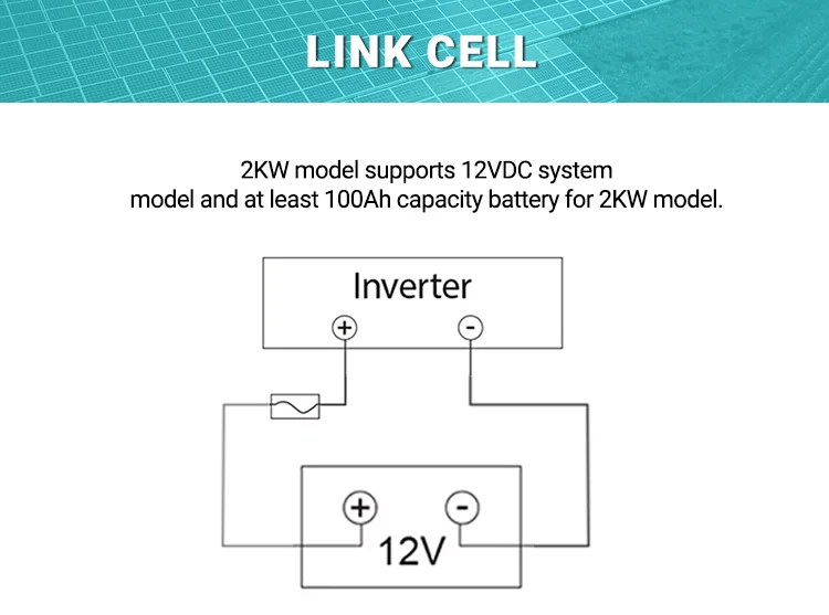 – งานต้องใช้แบตเตอรี่ (สามารถทำงานได้โดยไม่ต้องใช้แบตเตอรี่เมื่อเชื่อมต่อ PV ในระหว่างวันเท่านั้นในกรณีอื่นจะต้องต่อเข้ากับแบตเตอรี่ก่อนจึงจะสามารถใช้งานได้)
