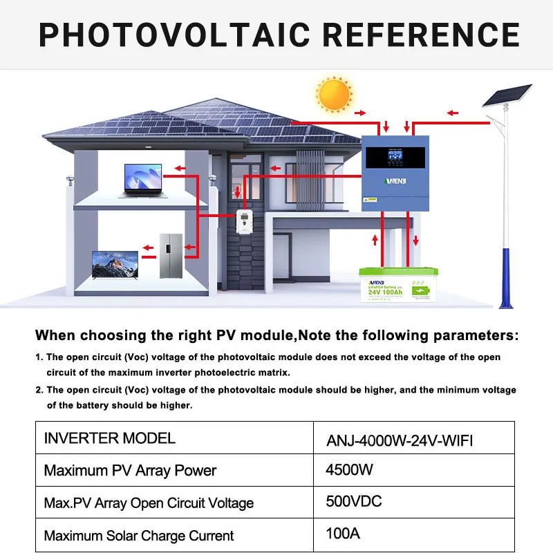 4kw 24V Solar Hybrid อินเวอร์เตอร์ 220/230VAC เปิด/ปิดตาราง MPPT 100A Solar Charger Solar Hybrid อินเวอร์เตอร์ Home Inversor
