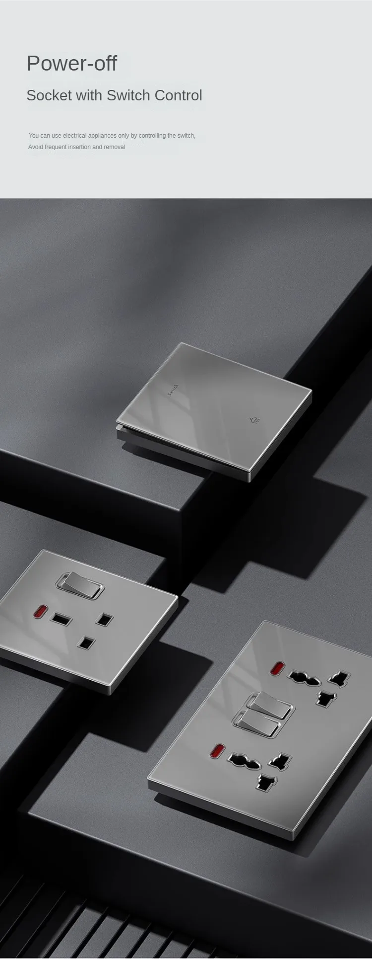 SRAN สีเทา FR EU ซ็อกเก็ตไฟฟ้าและสวิทช์แผงอลูมิเนียม DIY, SF9 Series Usb wall socekt ทีวี rj45 โมดูลฟังก์ชั่น