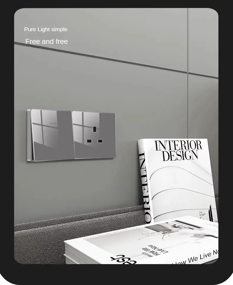 Delviz Wall 16A ปลั๊กไฟ, แผงคริสตัลแก้วคริสตัลสไตล์ใหม่, AC 110V-250V, สีขาว/สีดํา/สีเทา, ในครัวเรือนฝัง EU Standard Outlet
