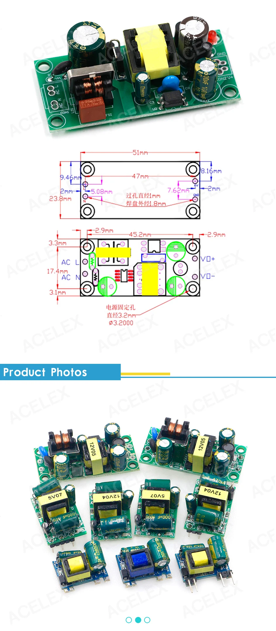 AC-DC 3.3V/5V/12V ตัวแปลงบั๊กที่แม่นยำ AC 220V ถึง5V DC Step Down Transformer โมดูล1A 12W