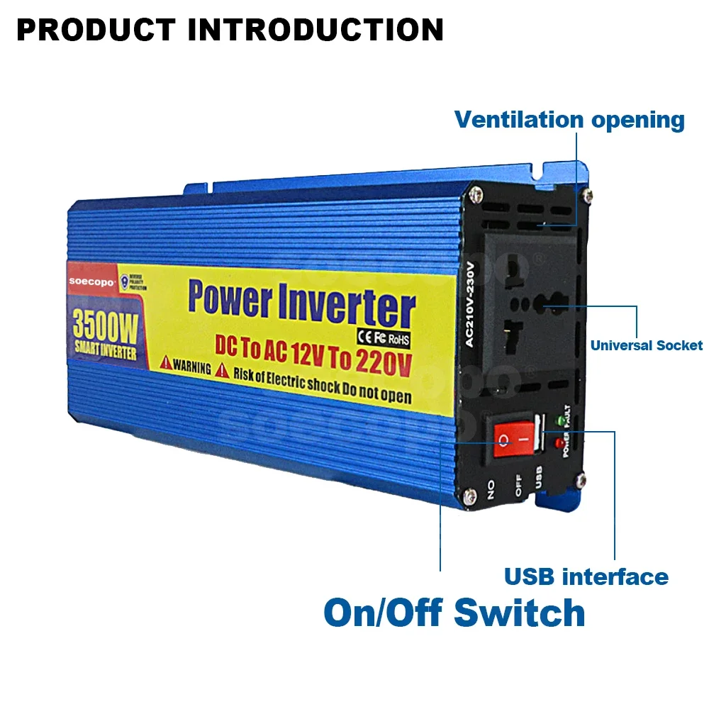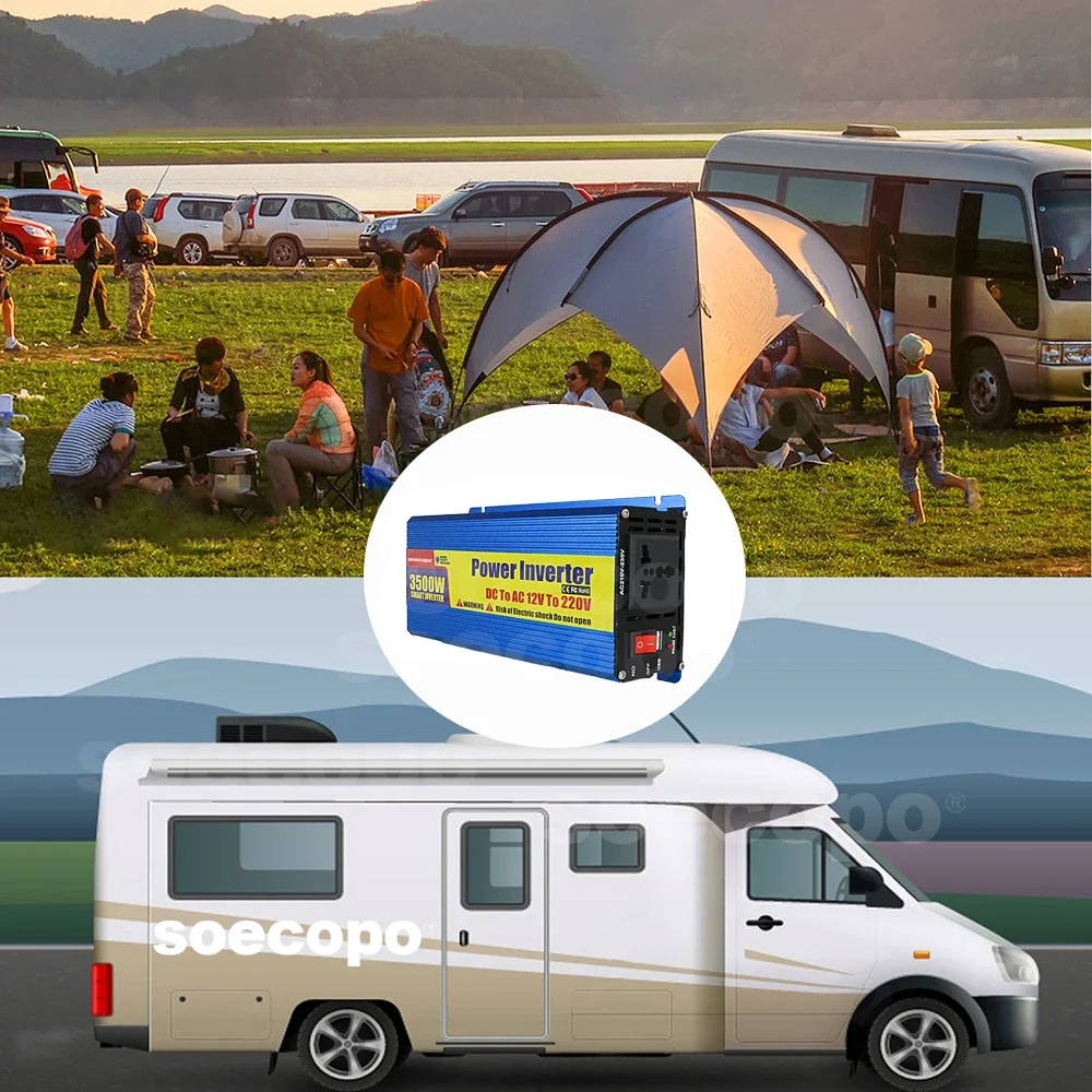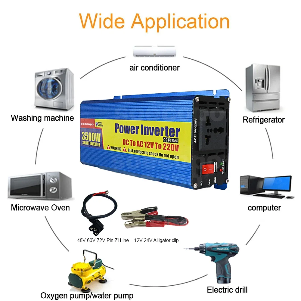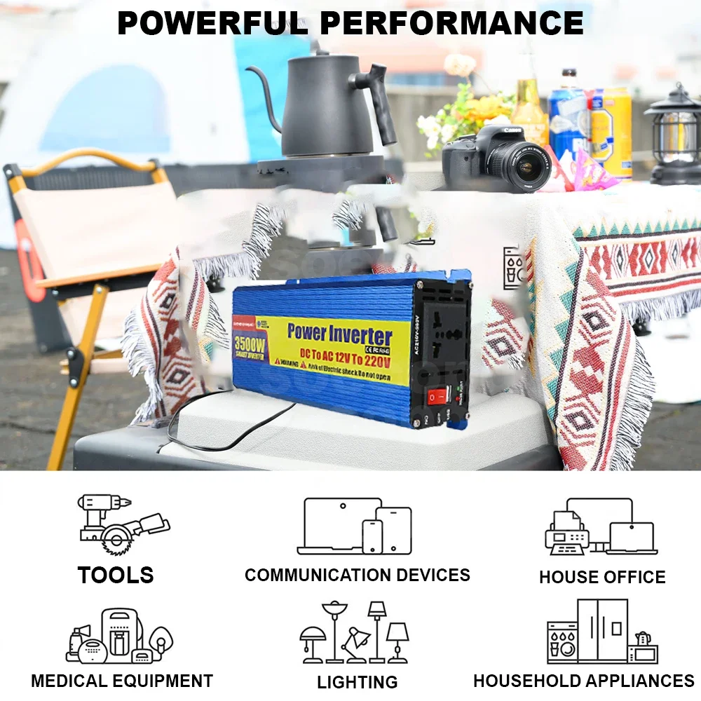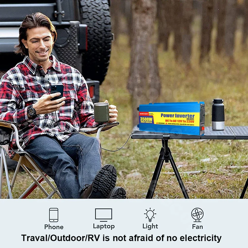 3500W รถอัจฉริยะอินเวอร์เตอร์ 12V 24V 48V 60V 72V ถึง 110V 220V พลังงานแสงอาทิตย์แบบพกพาสําหรับ Camping RV ฉุกเฉินกลางแจ้ง