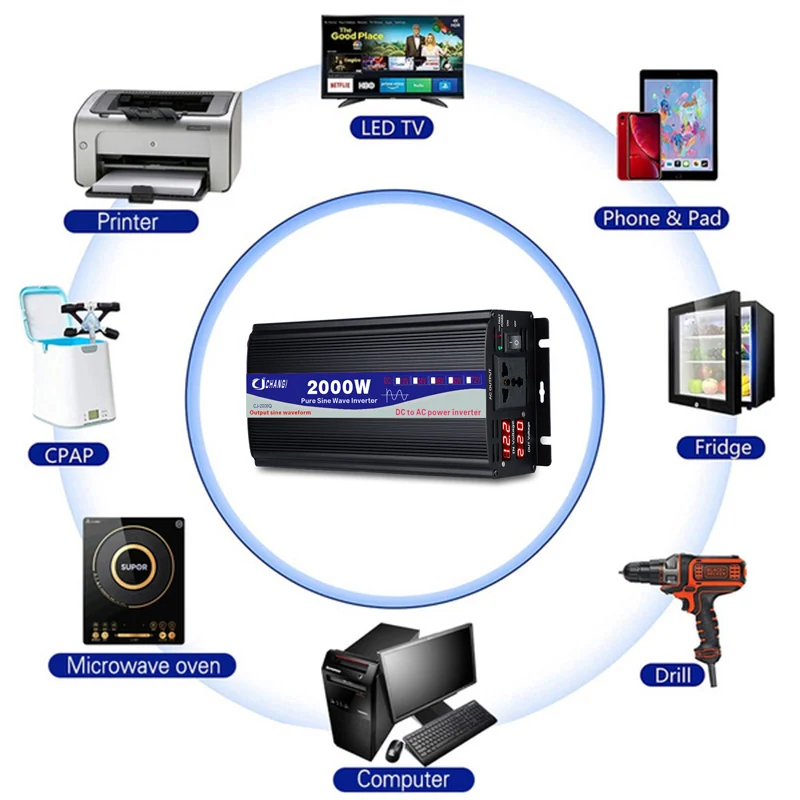 800W 1000W 2000W Pure Sine Wave Inverter Car Inverters Transformer Power 12V 24V 48V 60V 72V to AC 110V 220V Solar Converter