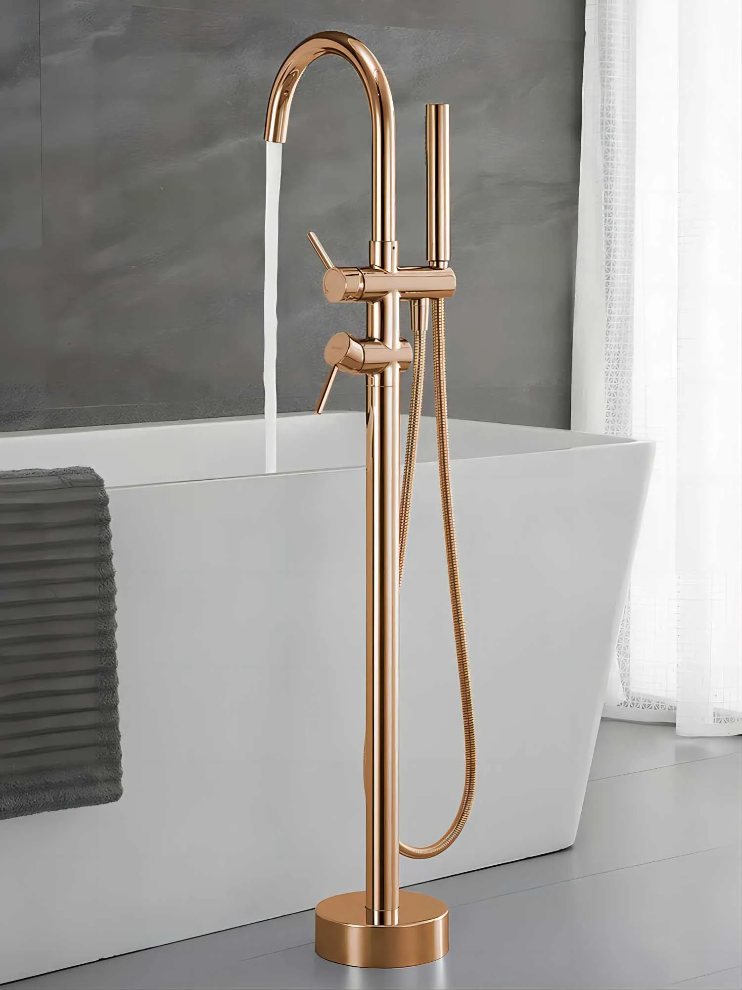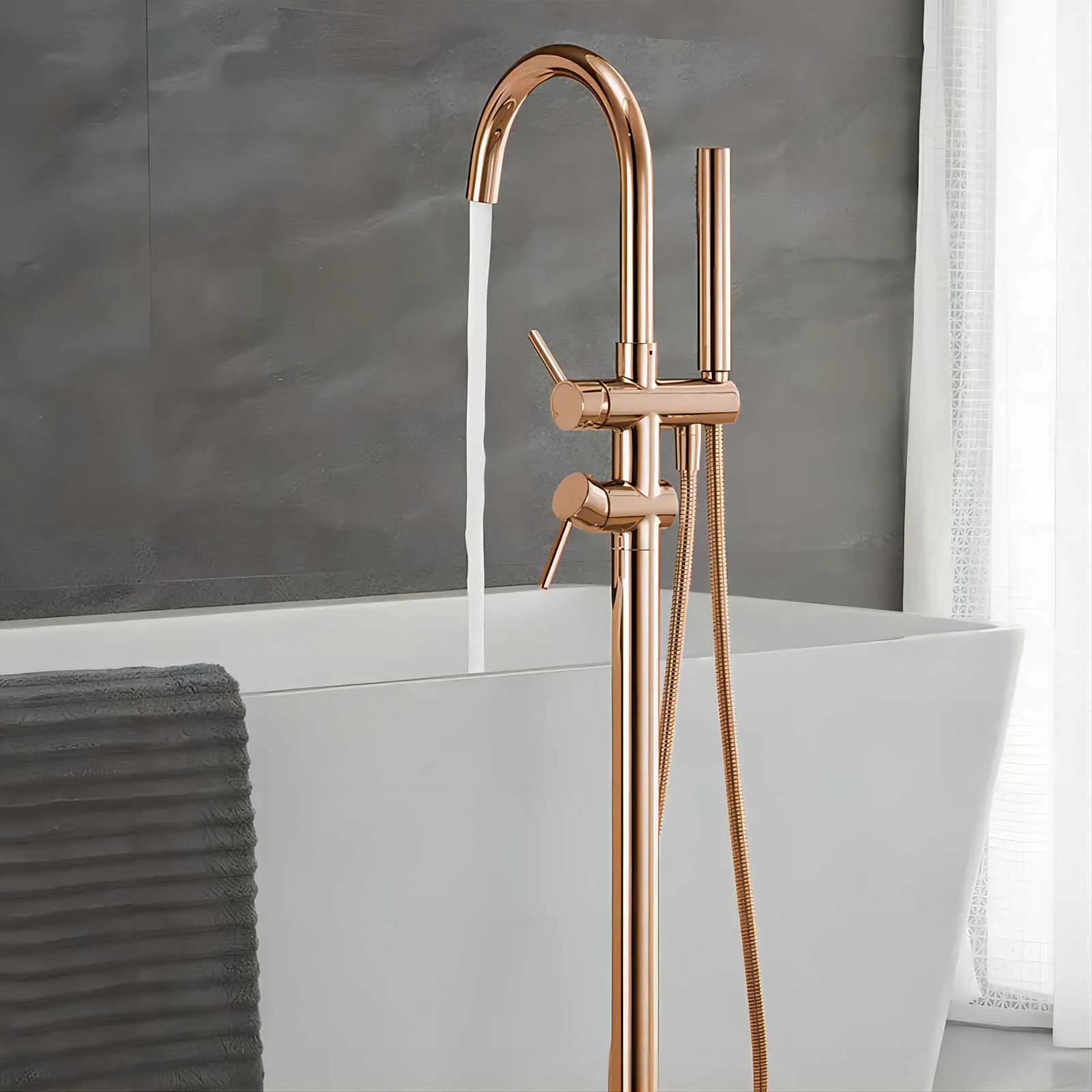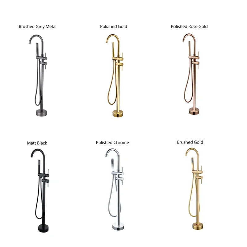 ก๊อกอ่างอาบน้ำทองคำสีกุหลาบ/แปรงปัดสีเทาที่จับคู่ทำจากทองเหลืองพร้อมก๊อกผสมน้ำอาบน้ำในห้องน้ำ
