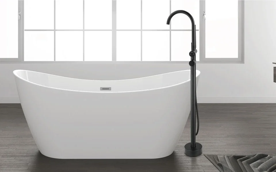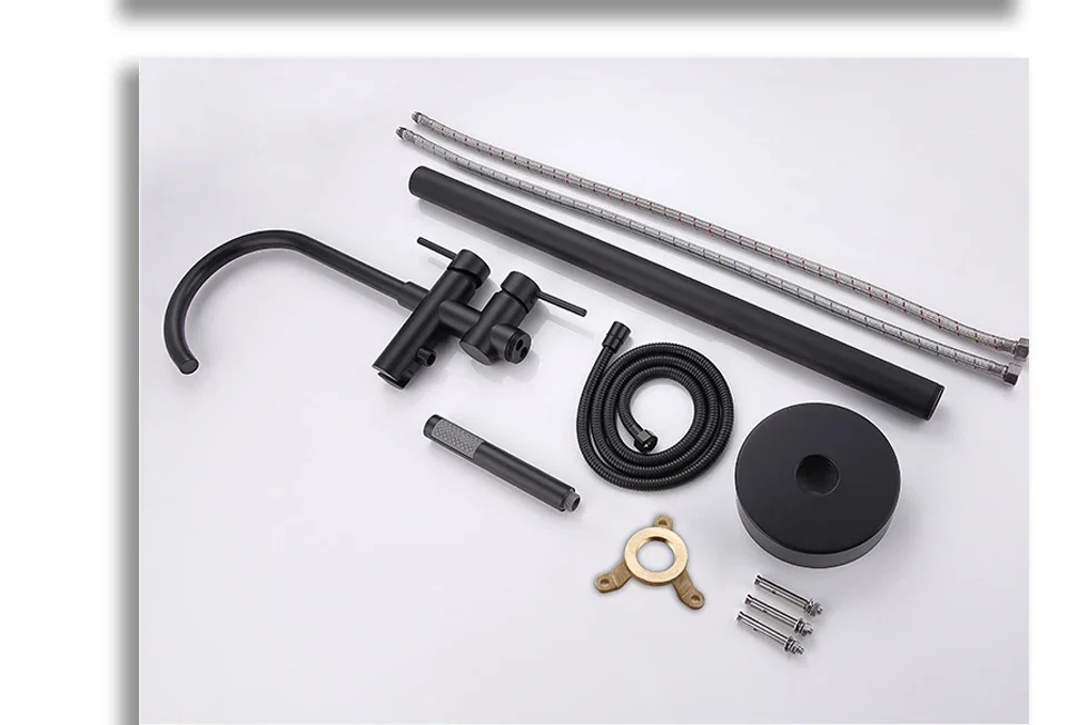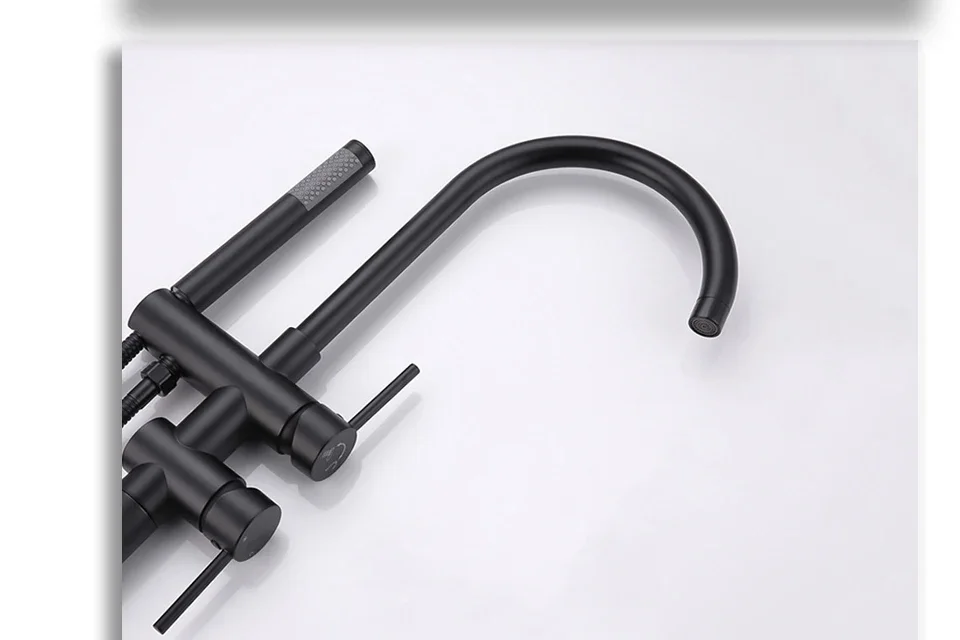 สีดําน้ํามัน Rubbed ทองเหลือง Clawfoot อ่างก๊อกน้ํา Wall Mount อ่างอาบน้ํา FILLER ก๊อกน้ํา Hand Shower