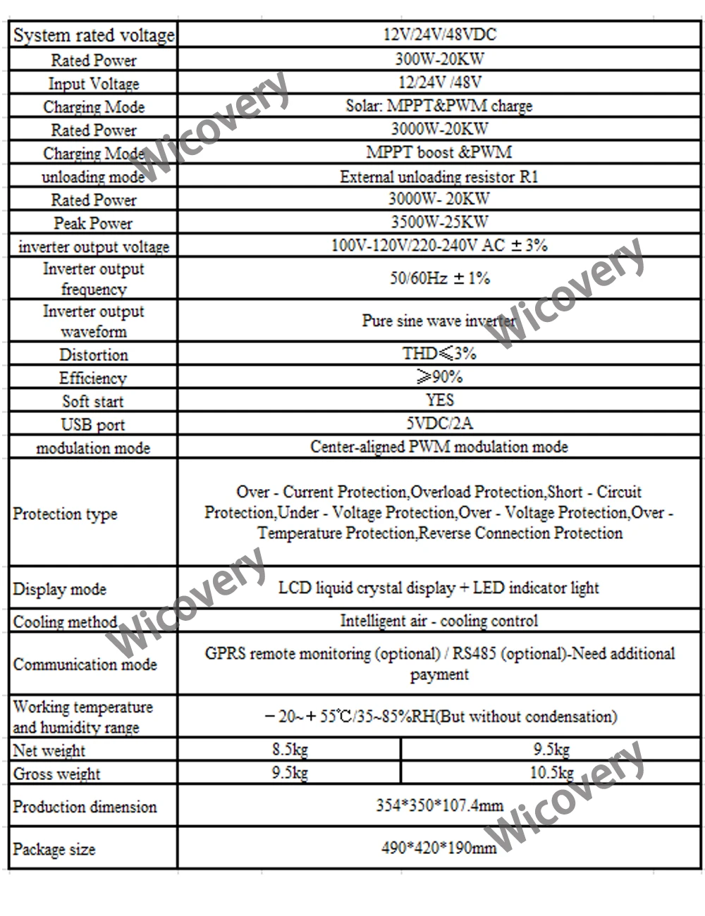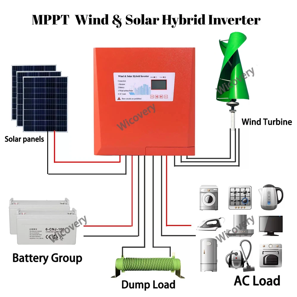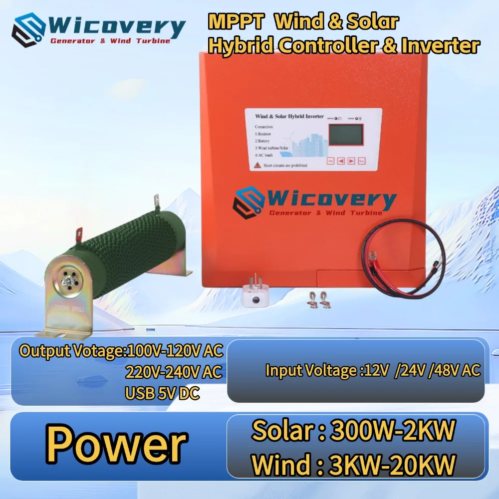Hybrid Wind & Solar Controller อินเวอร์เตอร์หม้อแปลง 5000W 8KW10KW 20KW พร้อมจอแสดงผล LED Dump โหลดอินพุต 12V 48V เอาต์พุต 110V 220V AC
