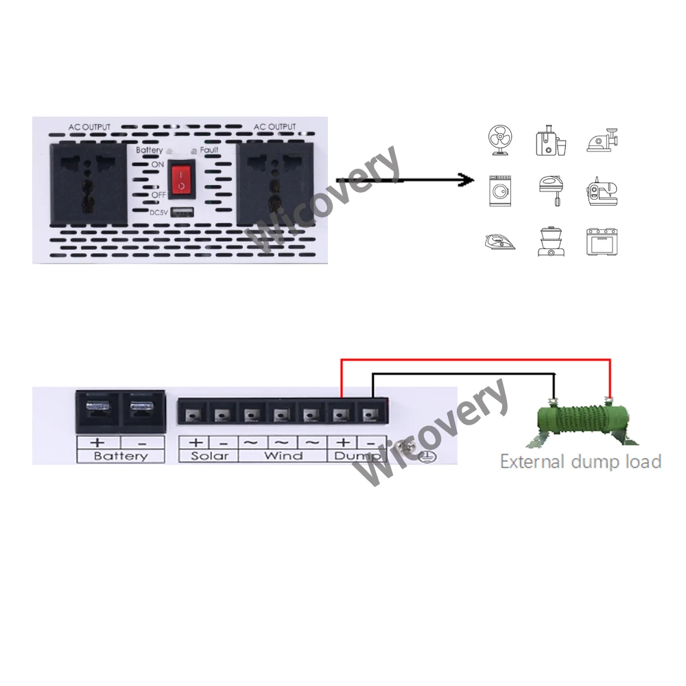 HYBRID WIND & SOLAR Controller หม้อแปลงอินเวอร์เตอร์ 5000W 8KW10KW พร้อมจอแสดงผล LED DUMP โหลดอินพุต 12V 48V เอาต์พุต 110V 220V AC