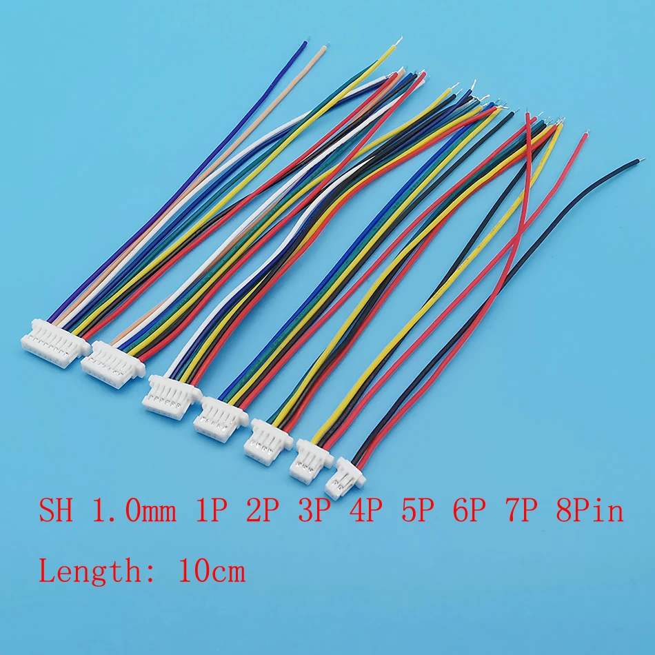 10 ชิ้น JST SH1.0 Pitch 1.0 มิลลิเมตร 2 จุด 3 จุด 4 จุด 5 จุด 6 จุด 7 จุด 8 ขาเดี่ยวหญิงแจ็คปลั๊กสายไฟอิเล็กทรอนิกส์เชื่อมต่อความยาว 10 เซนติเมตร 28AWG