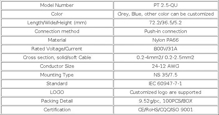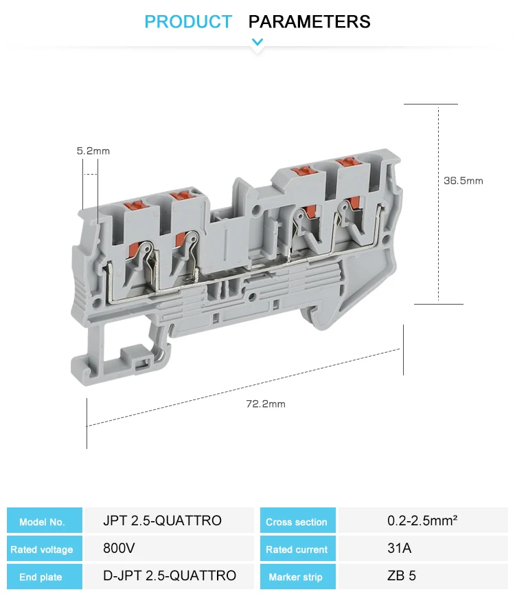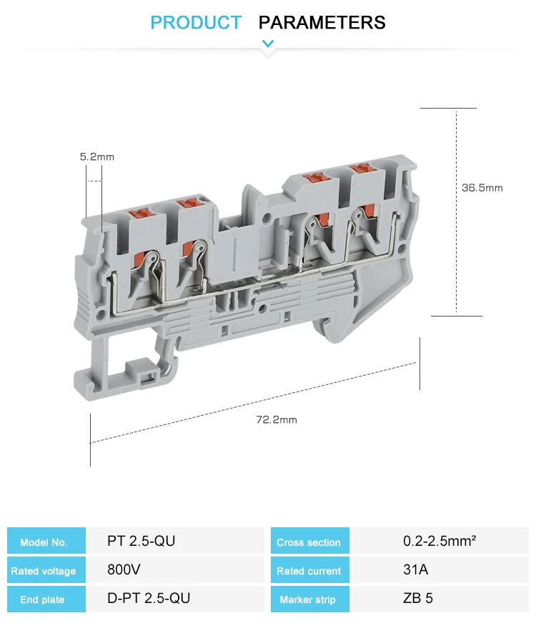 10 ชิ้น PT2.5-QU Push – In ฤดูใบไม้ผลิ 4 ตัวนํา Strip ปลั๊ก PT 2.5 QUATTRO ลวดเชื่อมต่อไฟฟ้า Din Rail Terminal Block PT 2.5-QU