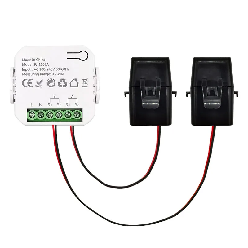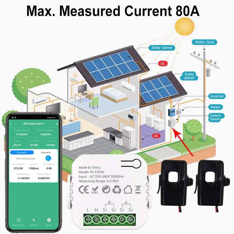 มาใหม่ Tuya WIFI Smart Dual Channel Energy Meter พร้อม Buzzer Alarm และ App Alarm สําหรับการตั้งค่าเกณฑ์ 1/2 Clamp 80A- แบบสองทิศทางสําหรับการวัดการส่งออกและนําเข้าพลังงาน
