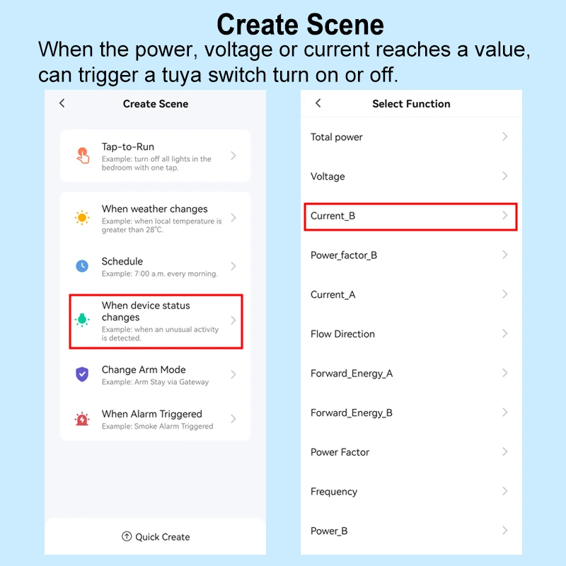 ตัวอย่างเช่น เมื่อไฟย้อนกลับหรือไปข้างหน้า (วัตต์) หรือ KWh ถึงค่า สวิตช์ tuya ตัวอื่นสามารถเปิดหรือปิดได้
