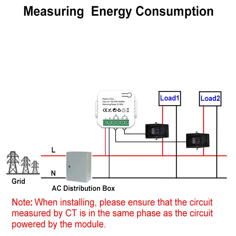 โปรดทราบเพื่อให้แน่ใจว่าวงจรที่วัดได้อยู่ในเฟสเดียวกับกําลังของวงจรไปยังโมดูล