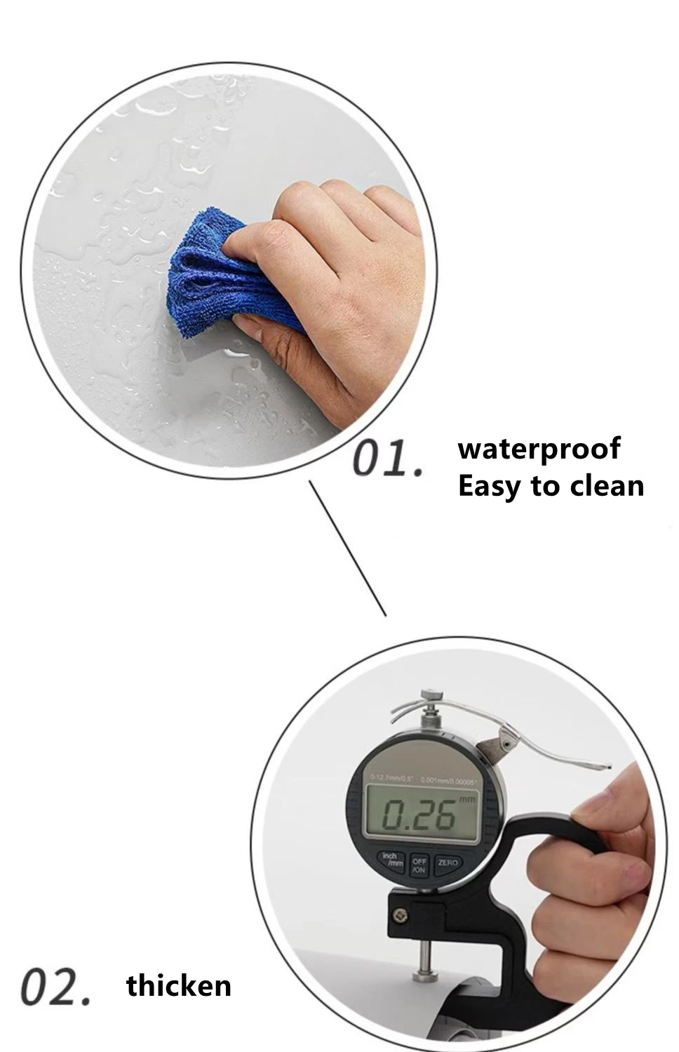 ทนต่อโรคราน้ำค้าง, ปราศจากฟอร์มาลดีไฮด์, เป็นมิตรกับสิ่งแวดล้อม, หนาพิเศษ, มีกาวในตัว, กันน้ำ, สามมิติ |