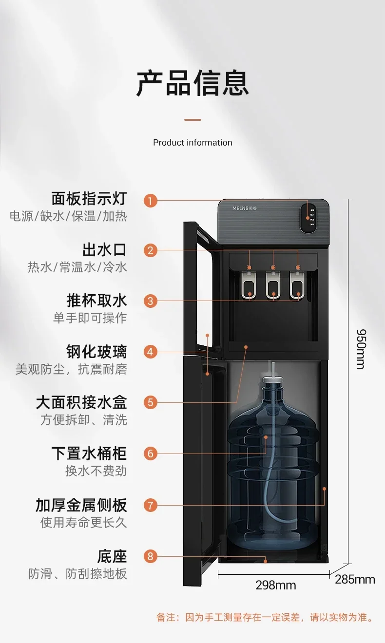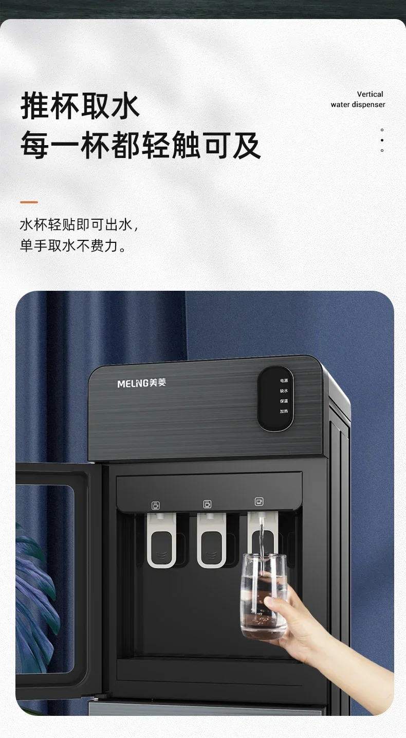 ตู้กดน้ําในครัวเรือนถังแนวตั้งอัตโนมัติอัจฉริยะระบายความร้อนและเครื่องทําความร้อนตู้น้ําอเนกประสงค์