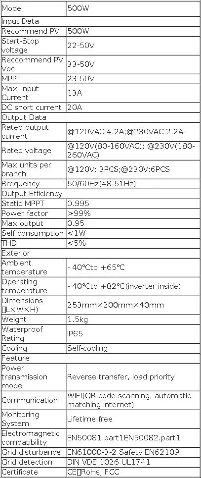 500W Grid Tie อินเวอร์เตอร์พลังงานแสงอาทิตย์ 22-50VDC พร้อม WiFi ในตัว IP65 ติดตั้งง่ายสําหรับ 120VAC หรือ 230VAC Home Grid และแผงพลังงานแสงอาทิตย์