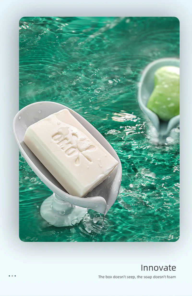 การระบายน้ำอัตโนมัติสบู่กล่อง Leaf Shape ผู้ถืออ่างล้างจาน Rak Spon ห้องครัวดูดห้องน้ำถ้วยถาดกล่องเก็บอุปกรณ์เสริม