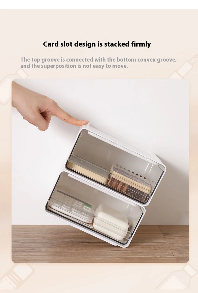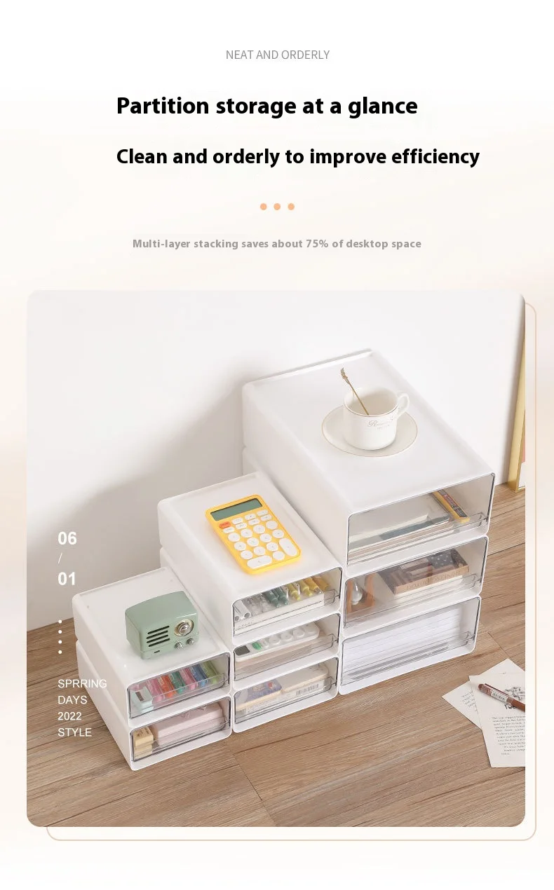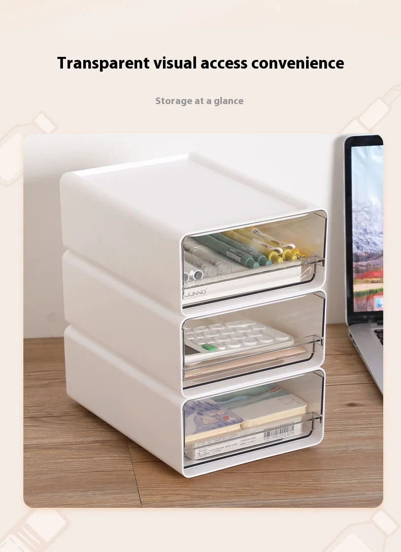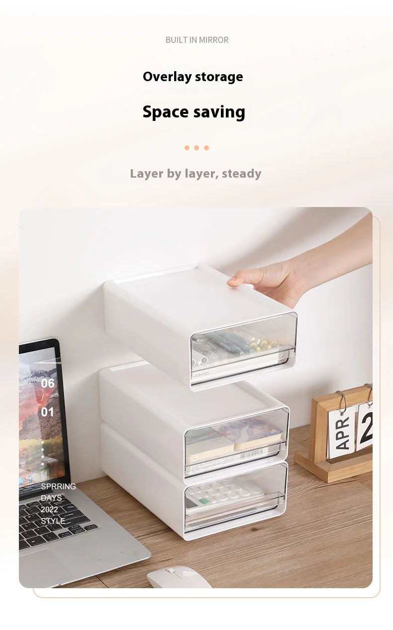 ตู้ลิ้นชักกล่องเก็บโปร่งใสตั้งโต๊ะแบบกล่องเก็บเอกสารสำนักงานห้องนอนตู้เก็บของแบบซ้อนทับ